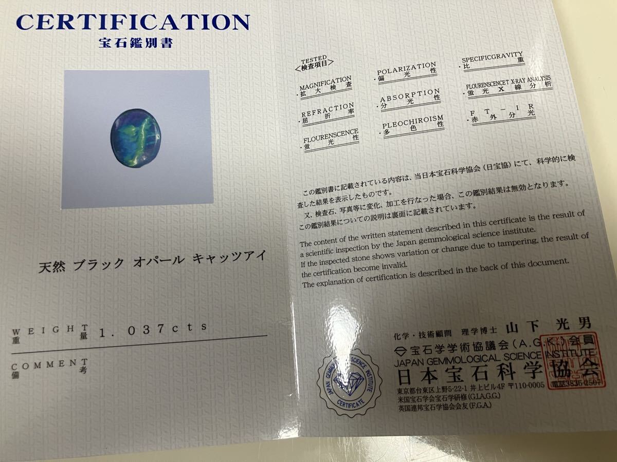 ブラックオパールにキャッツアイ(シャトヤンシー効果)が現れる非常に珍しいオパールです。