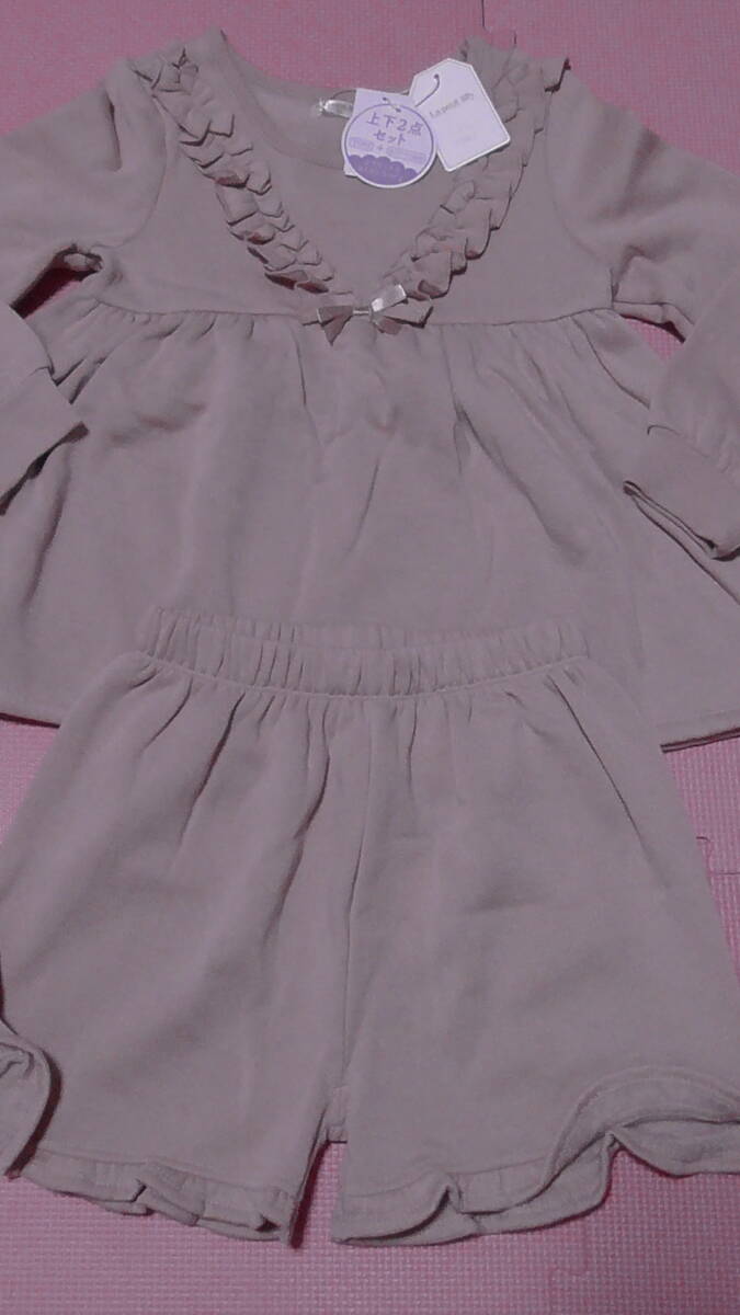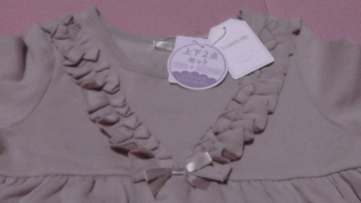 新品 130 トレーナー ショートパンツ 上下2点セット 胸元フリル ピンク トップス ボトムス まとめ売り 女の子 双子 裏起毛 120〜 送料無料