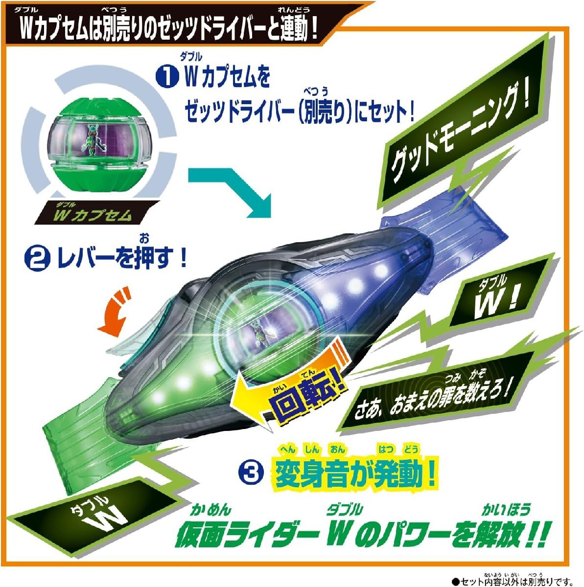 ■また、付属の「Wカプセム」は、別売りの「変身ベルトDXゼッツドライバー(別売り)」にセットすることで各ライダーオリジナルの音声、発光遊びが楽しめます。