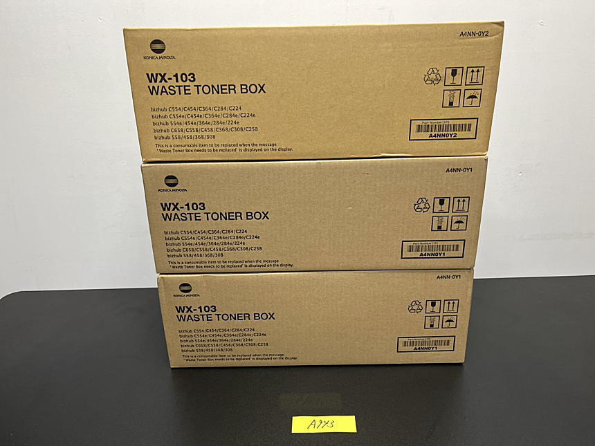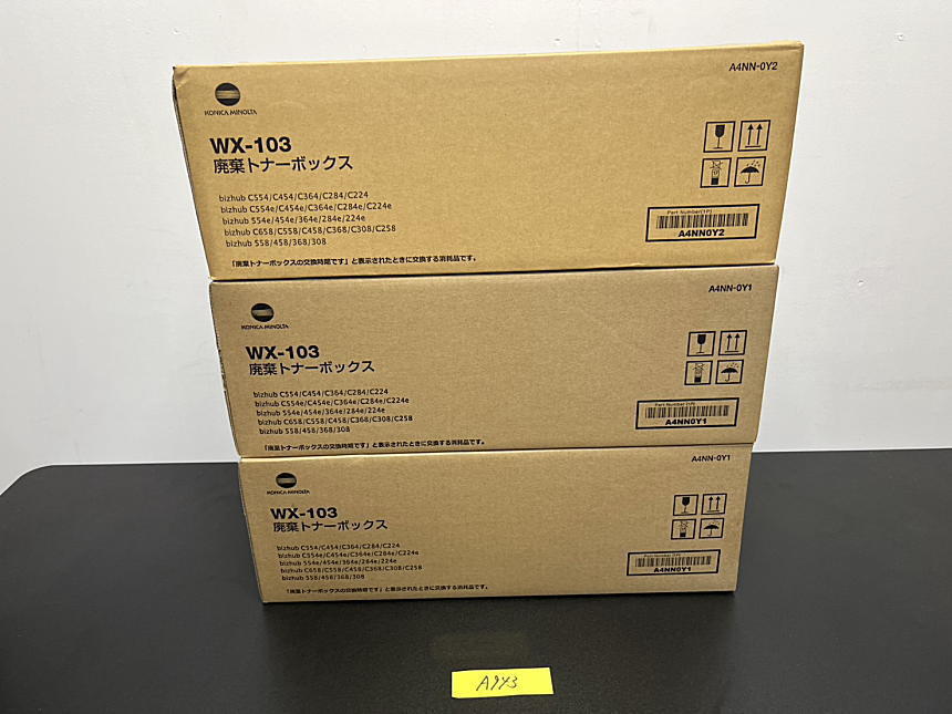 A-943【新品・1箱つぶれあり】コニカミノルタ 廃棄トナーボックス WX-103 WASTE TONER BOX 3箱セット 純正 未使用品です。 商品は当方に入荷した時点で、開封が出来る物はトナーの粉漏れ、インク漏れ、痛みがないかチェック済みです。痛みがある(大きな汚れ、痛み、書き込み等)、重要な痛みは商品画像に撮影してあります。撮影部分以外に多少の痛み(スレ、キズ、剥げ、破れ、潰れ、ヤケ、書き込み、汚れ等)ある場合があります。ご了承の上ご購入をお願いします。 商品内容は画像にてご確認ください。画像のものが全てです。 ※発送について※外箱にプチプチを巻いて送り状を貼り付けて発送又は再利用の段ボールで発送させていただきます。ご了承の上ご購入をお願いします。 ご連絡は取引ナビにてご連絡ください。 返品・返金・クレームはお受けできませんので、何卒ご理解の上ご購入をお願いいたします。 ※注意点 画像にある・背景の板等は付属いたしません。 ノークレーム・ノーリターンでお願い致します。 商品の状態などは画像にてご判断下さい。 直接の引き渡しは対応しておりません。 | |||||