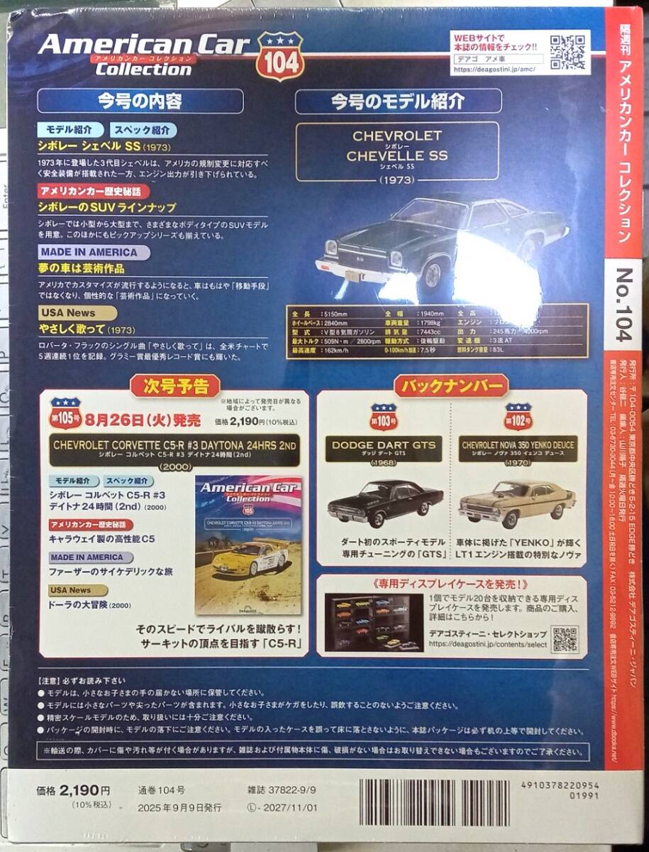 ☆ディアゴスティーニ No.104 1/43 アメリカンカーコレクション シボレー シェベルSS(1973)☆新品未開封品