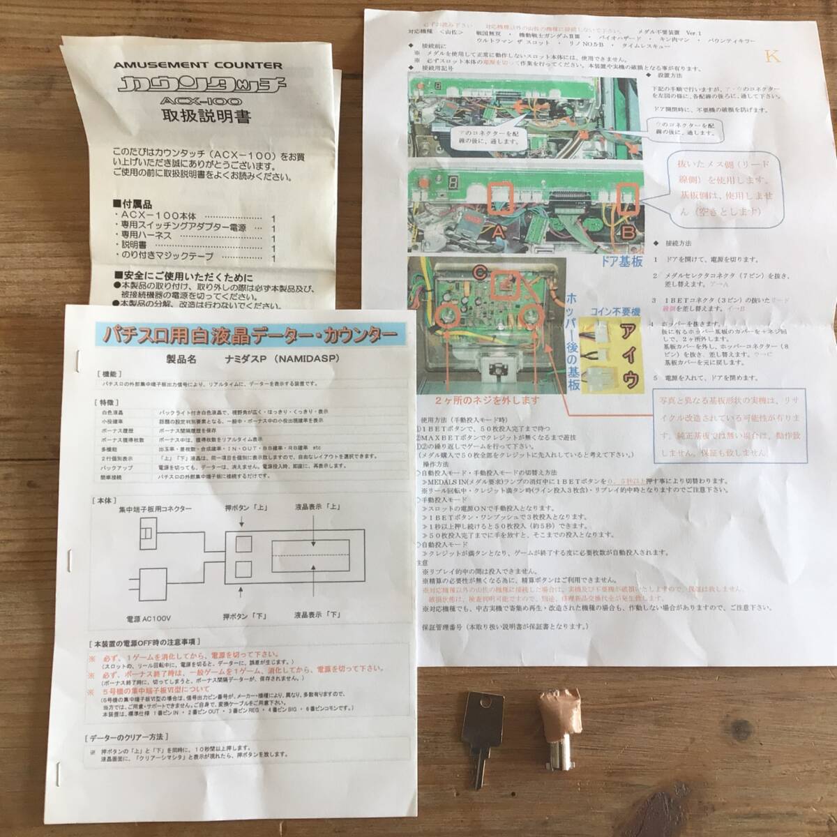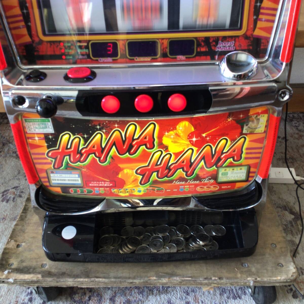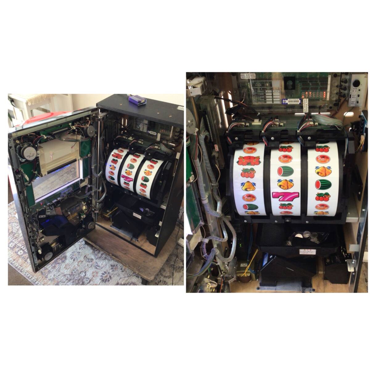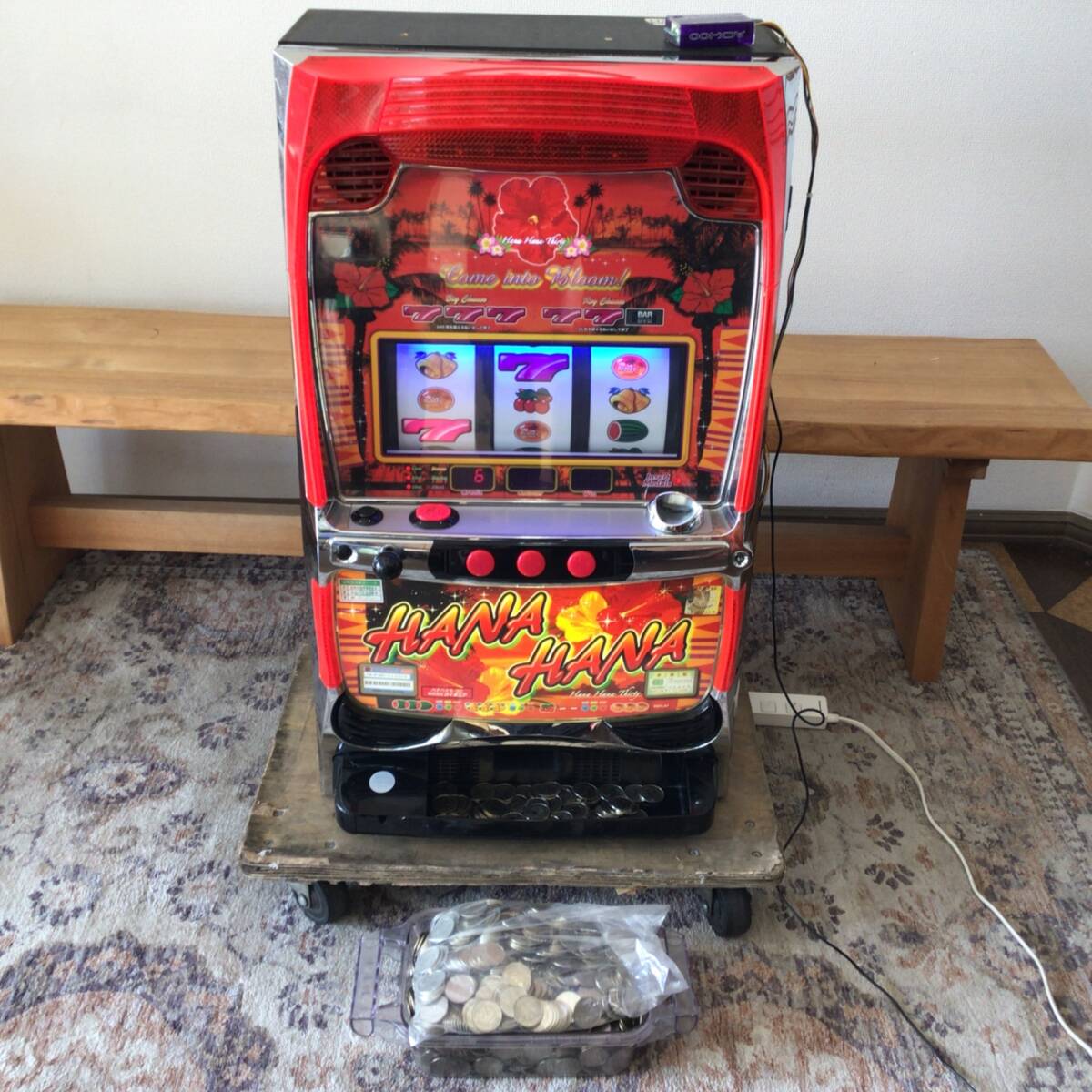 | 商品説明 | ・中古品です。 ・動作確認済みです。 ・カウンタッチが付いてますが動作不明です。(説明書が付いてます) ・ドアキー、設定キー付きです。ドアキーの持ち手が破損してますが開閉は可能です。 ・コインはドル箱1杯以上ついてます。写真を参考してください。 ・写真が全てです。 ・本品愛知県受渡方限定です。 ・現状、写真の通りでお願いいたします。 |