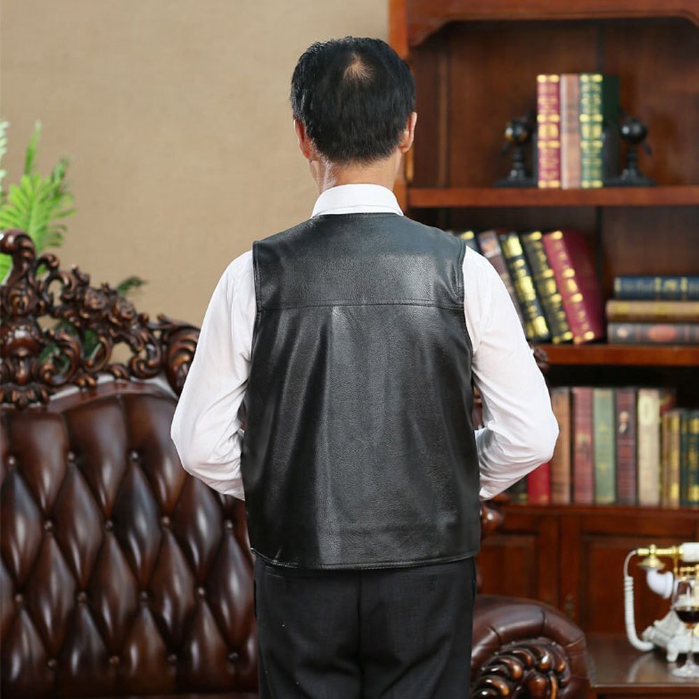 2025 新品 最高級イタリア製造 レザーベスト PUレザー 保温 ジャケットベスト 秋冬 裏起毛 厚手 カジュアル 革ジャン M/46 fz98