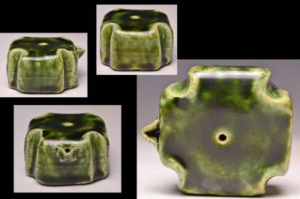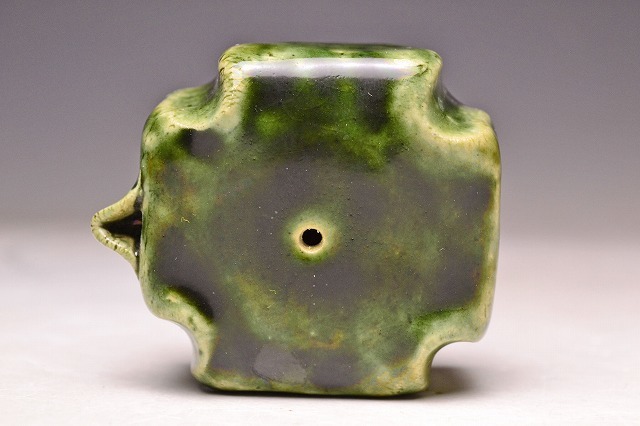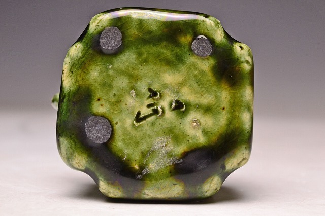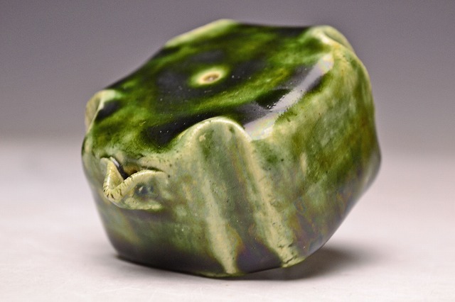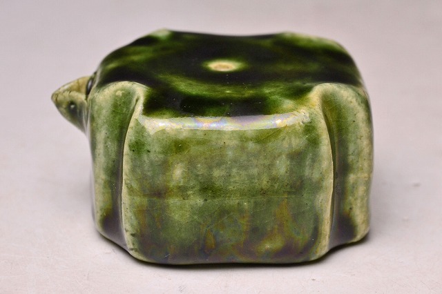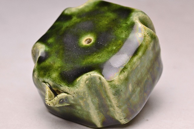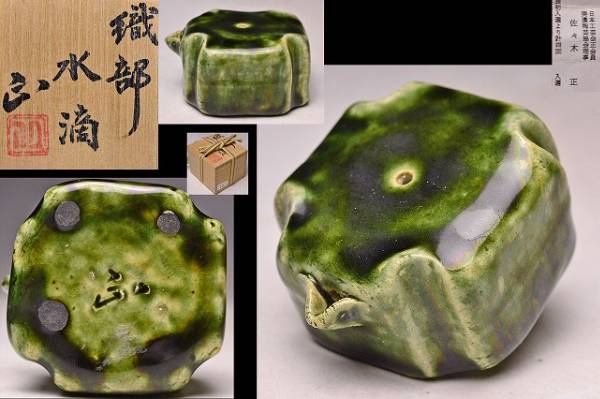 サイズは 61mmx53mmx高さ21mm です。 人間国宝 加藤土師萌 氏 巨匠 加藤幸兵衛 氏に師事された 実力派人気作家 佐々木正 氏作の 織部 水滴 です。 織部釉 の 発色 が美しい 掌中の逸品 です。 宅配便60サイズにて発送します。他にも多数出品しています。同梱対応いたします。