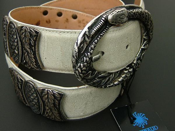 新品 トルネードマート イタリア製 蛇バックル 白ベルト 597 パイソン