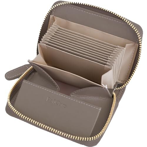 [RafiCaro] ミニ財布 お札が折れない 財布 レディース メンズ 二つ折り財布 大容量 じゃばら カードケース ボックス型 小銭入れ YKKファスナー 牛革 小さい財布 グレージュ