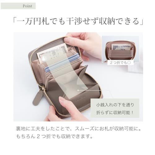 greige [RafiCaro] ミニ財布 お札が折れない 財布 レディース メンズ 二つ折り財布 大容量 じゃばら カードケー