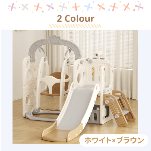 【ホワイト×ブラウン】滑り台 すべり台 ブランコ スイング 大型遊具 すべりだい 収納スペース スライダー 室内 遊具 キッズ キッズパーク