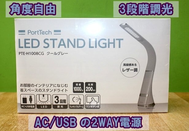 未開封 LEDスタンドライト PTE-H1008CG クールグレー デスクライト 照明 レザー調