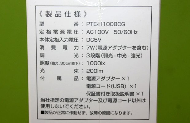 ●付属品  電源アダプター、電源コード(USB)、取扱説明書