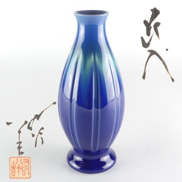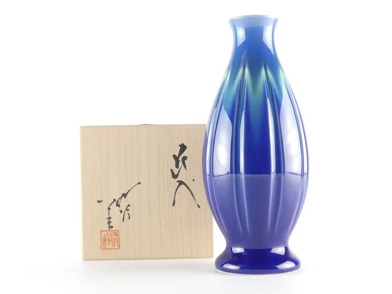 人間国宝 三代 徳田八十吉(金銘)「花入」共箱