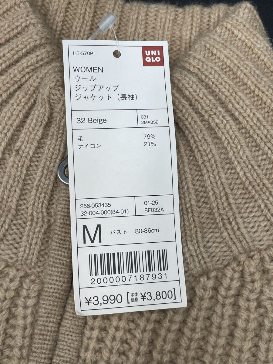 71【未使用・タグ付き・未検品】UNIQLO ユニクロ レディース ウール ジップアップ ジャケット(長袖)サイズM