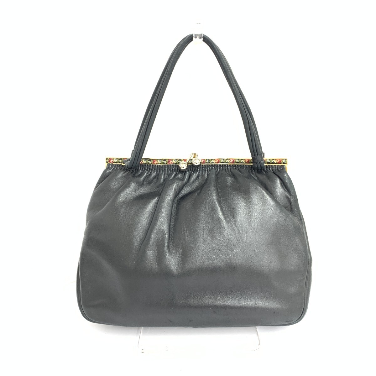 がま口ハンドバッグ ゴブラン織 ナッパレザー |