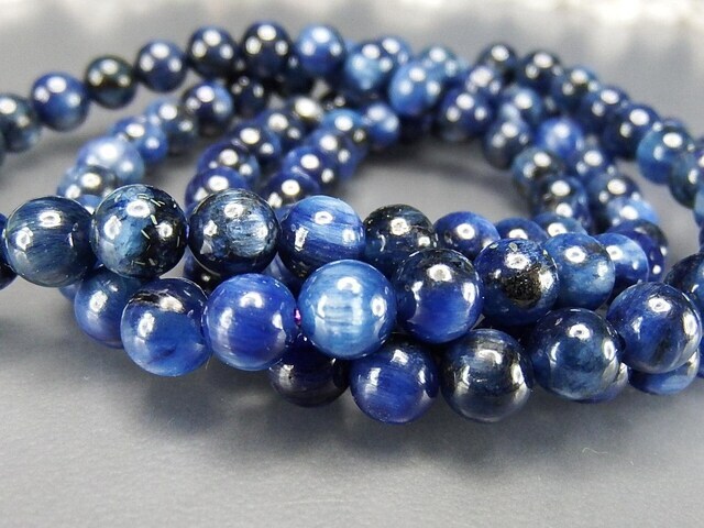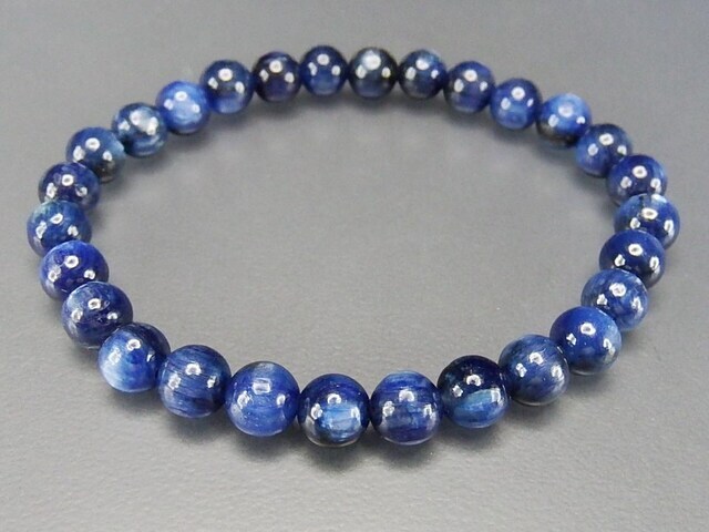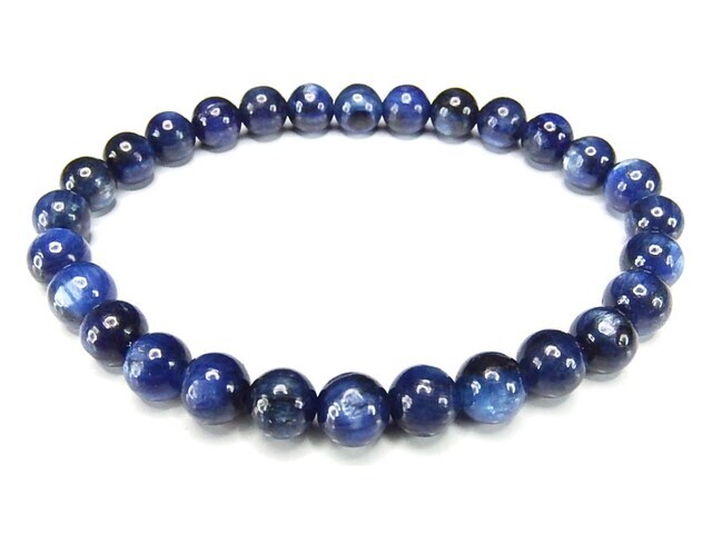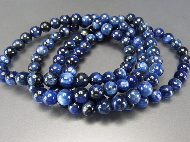 濃い目カイヤナイト約6.5mmブレスレット キャッツアイ天然石藍晶石プライム