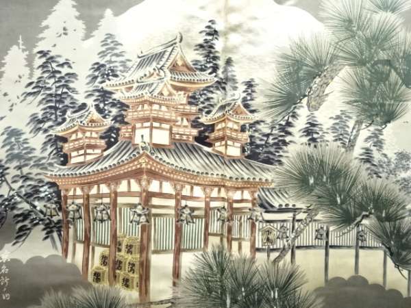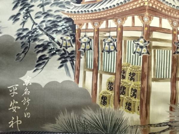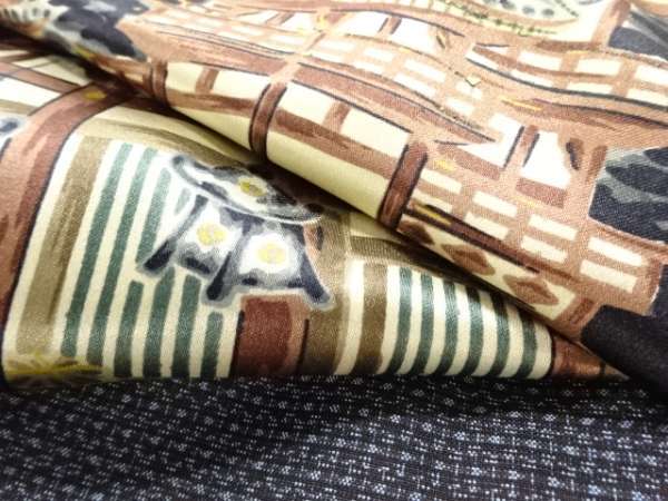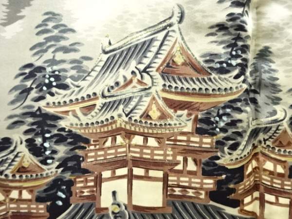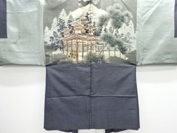 ys7561959; 寺社風景模様肩裏本場泥大島紬男物羽織【アンティーク】【着】