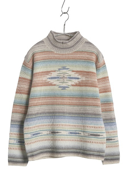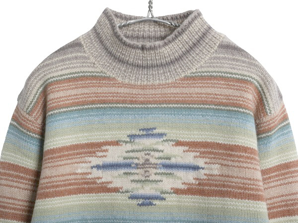 | 商品名 | 90s ローレン ラルフローレン ネイティブ ボーダー ニット セーター レディース S オールド ポロ ウール 手編み ハンドメイド ハイネック |