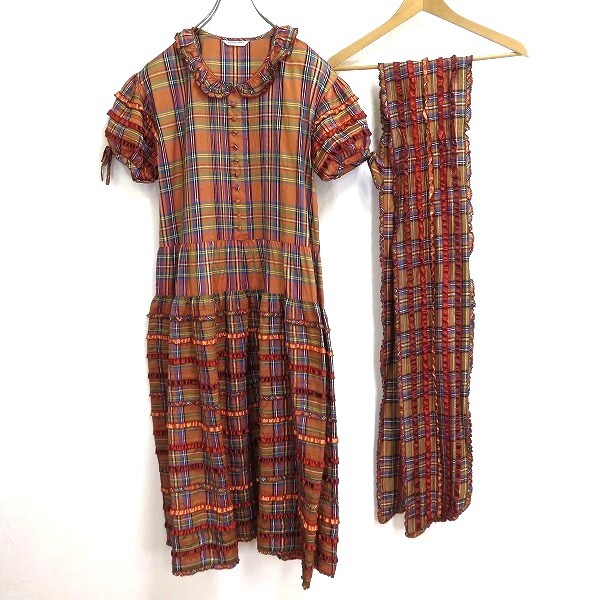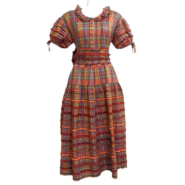 | 商品名 | #su ワンダフルワールド WONDERFUL WORLD カネコイサオ 半袖 ワンピース オレンジ チェック 絹 ピコフリル コレクター [970472] k01 |