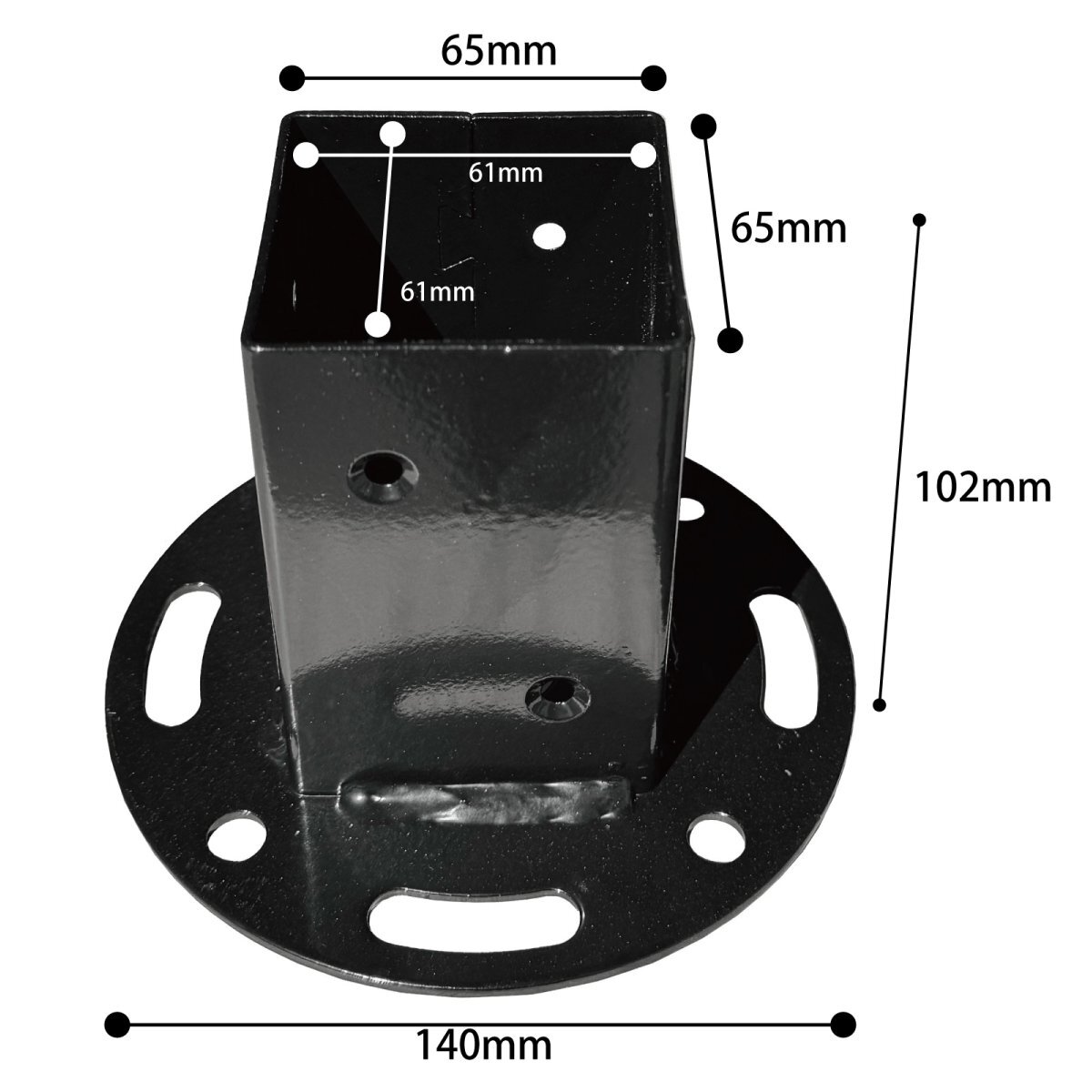 igarden 平止め金具【2個セット】60cm角柱用 スチール製 ブラック 柱固定用 ビス付き コンクリート アスファルト アンカー止め 施工 DIY 10
