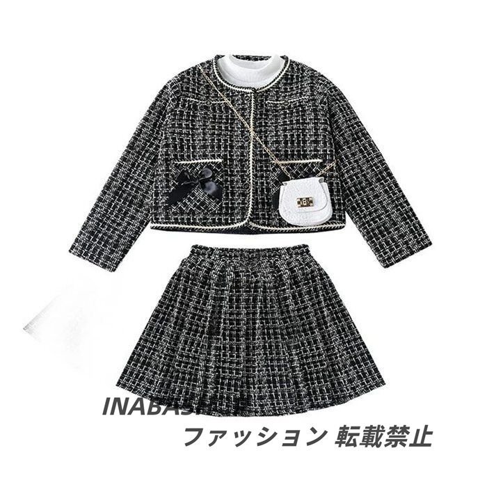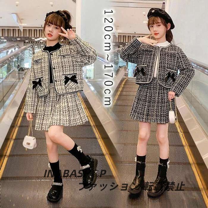 女児 スカート セットアップ 2点セット ポレロ フォーマル ドレス チェック柄 長袖 膝丈 ジュニア キッズ 子ども服 女の子 春 秋