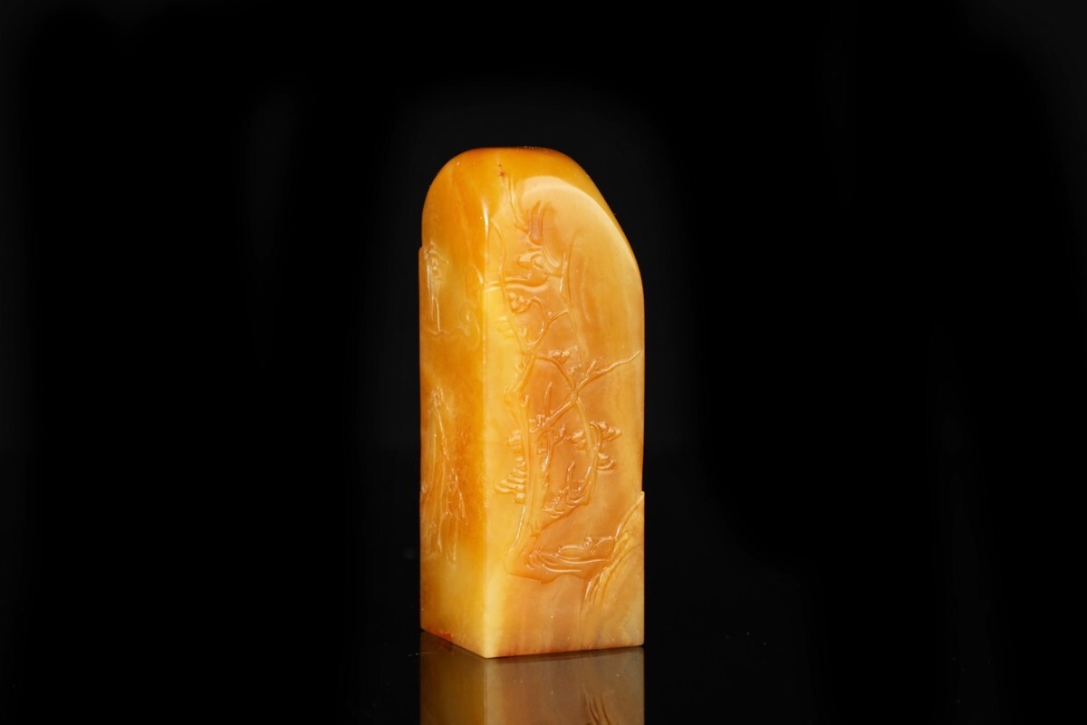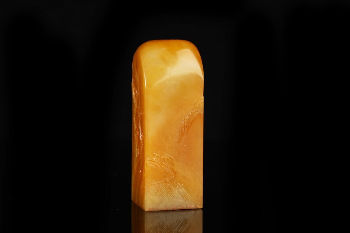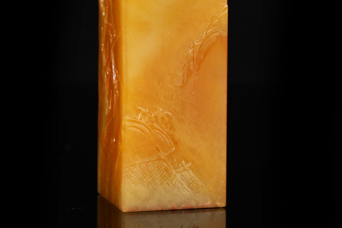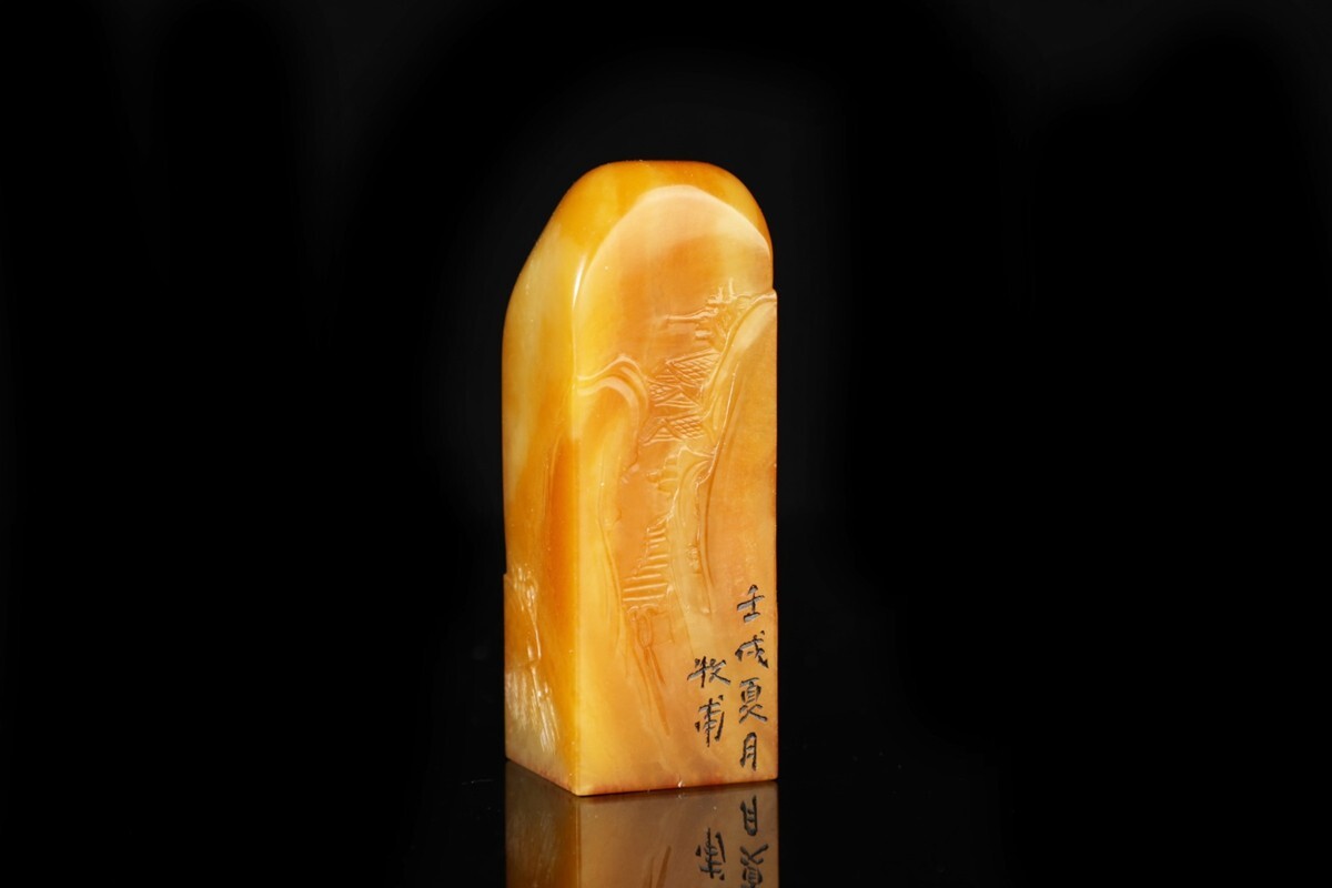【瓏】寿山石 田黄石彫 山水人物印章 清代 牧甫 極細工 手彫り 置物擺件 中国古賞物 古美術 蔵出