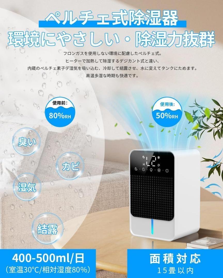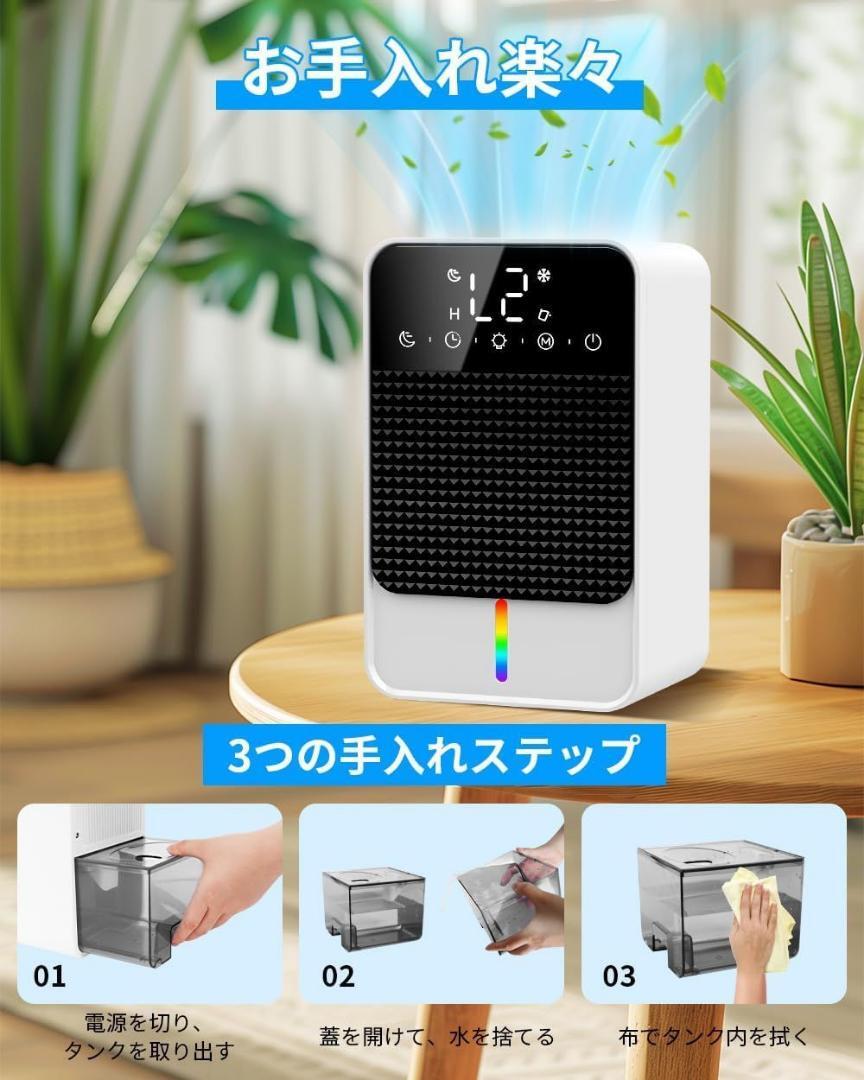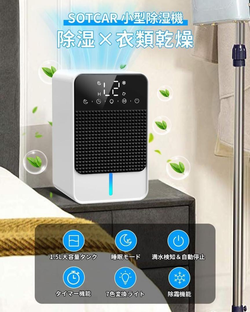 SOTCAR 除湿機 小型 除湿器 強力除湿 ペルチェ式 除湿量450ml/日 コンパクト 省エネ 7色LEDライト <!-利用不可文字-!>水自動停止・自動霜取り・スリープ機能・タイマー タッチパネルイ搭載 お手入れ簡単 湿気取り 大容量 1500ML 乾燥 梅雨 花粉 消臭 結露 カビ防止 PSE認証済 洗面台 脱衣所 トイレ クローゼット 寝室など適用 約15畳対応 【1500ML大容量タンク・満水自動OFF】小型除湿機は1500ML大容量水タンク付き、頻繁に水を捨てる手間がかかりません。引き出し式排水タンクで、排水もラクラク。正面から水位窓付、背面半透明のタンクで、水量がひと目で分かります!満水になると自動停止機能を搭載し、水タンクが満水になると、7色ランプが赤く点灯し、自動で運転を停止します。睡眠中や留守中にもタンクの水が溢れる心配がなく、安心に使えます。 実物の写真は7枚目からになります。 トップ画像や商品説明と相違がある可能性がありますので実物の写真を確認してからのご購入お願いします。 もし相違や商品説明と違う場合はコメントくださいませ。商品詳細をお調べいたします。 不安がある方、完品を求める方は購入しないでください。 amazon価格 ¥6,580 即日発送。 開封痕、使用痕等がある場合がございます。 外箱の破損や多少のビニールの破れ等は不問としております。 本商品は訳あり商品となっているため、箱が潰れている、ビニールが破けている、指紋が若干ついている、などの可能性がございます。 検品は最低限しておりますが使用感や部品不足など見逃している可能性もございます。 1100円以上の商品はフォロー+商品購入希望コメントで100円お値引き致します。 発送方法は最安値で送るため変更になる場合もございます。 必ずプロフィールを一読、了承されてからのご購入お願いします。 購入後のクレームは対応しかねますので上記をしっかりとご理解いした上でのご購入をお願いします。 管理用箱番号【55h1287】 HIDAMARI |
