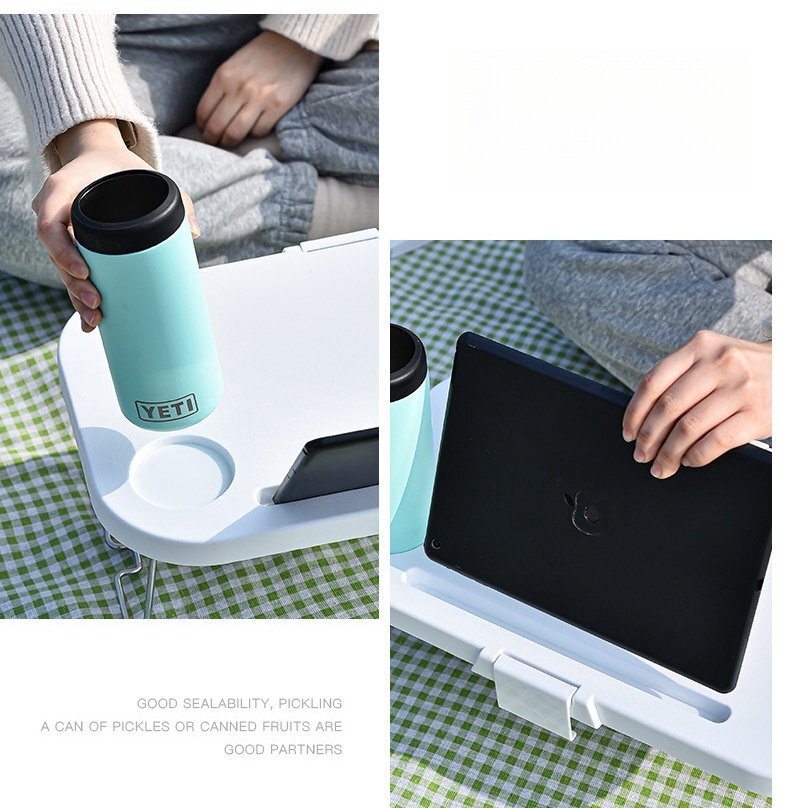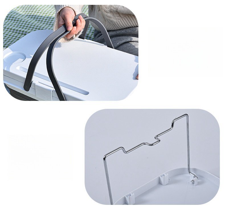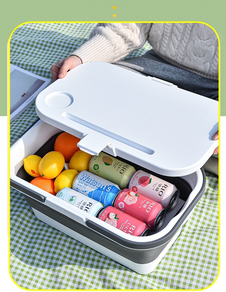 ★蓋を開くと小さなテーブルになり、蓋の上部には携帯電話ホルダーと水飲みカップホルダーが付属しており、まな板としても使えるのでピクニックも楽々です。