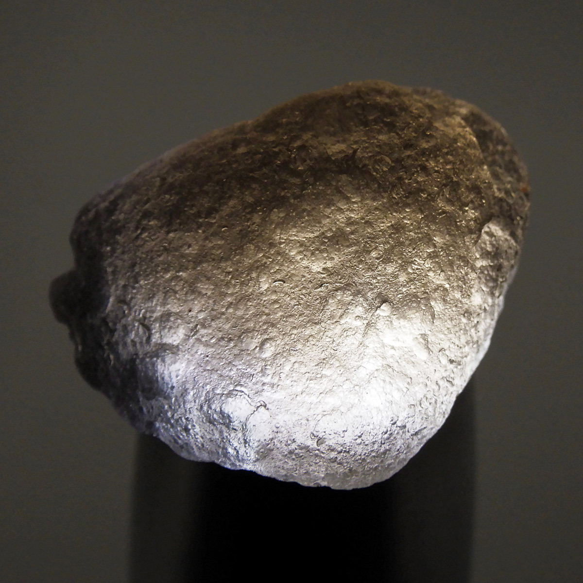 インドネシア・ジャワ島で採掘される希少な天然ガラスであるアグニマニタイトの原石です。アグニマニタイトの石の名前は、サンスクリット語で「火の神」を意味するアグニと「宝石」を意味するマニに由来し、「火の宝石」として知られています。表面はマットな黒~グレーの質感で、ごつごつとした天然のテクスチャが魅力的。光に透かすと、ほんのりスモーキーで神秘的な雰囲気を放ちます。フォルムや質感が面白い原石です。鉱物コレクションやお守り、アクセサリー制作にもおすすめです。