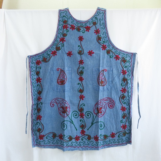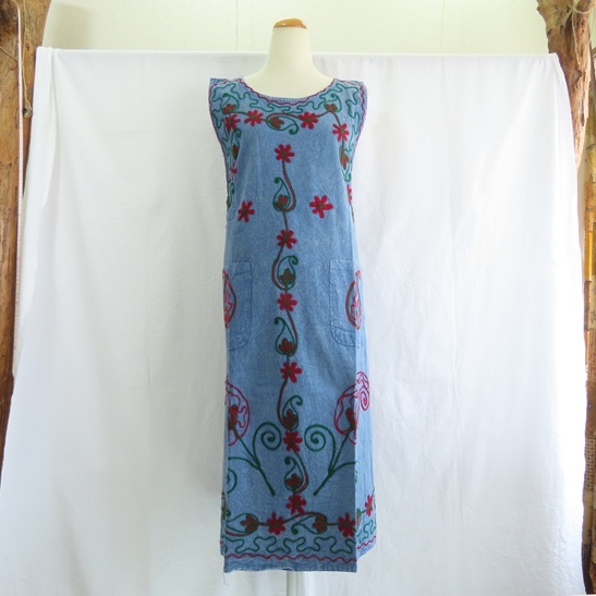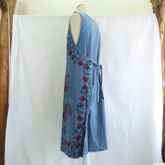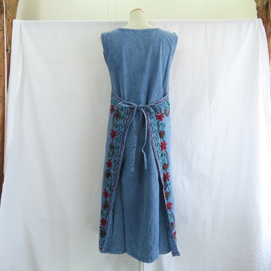 〓 新品 〓 エプロン ワンピース 〓 刺繍 エスニック アジアン インド綿 ドレス 家事 料理 掃除 ガーデニング おしゃれ 〓A090