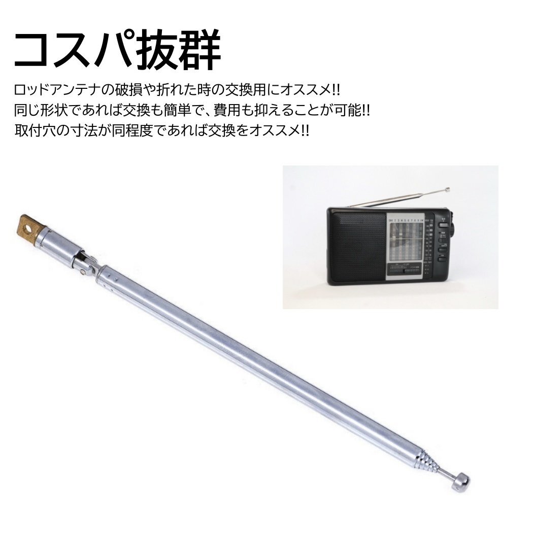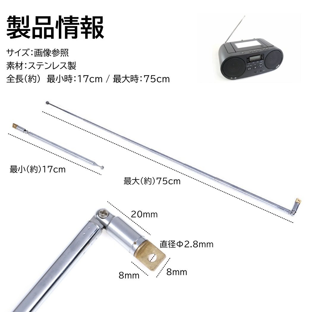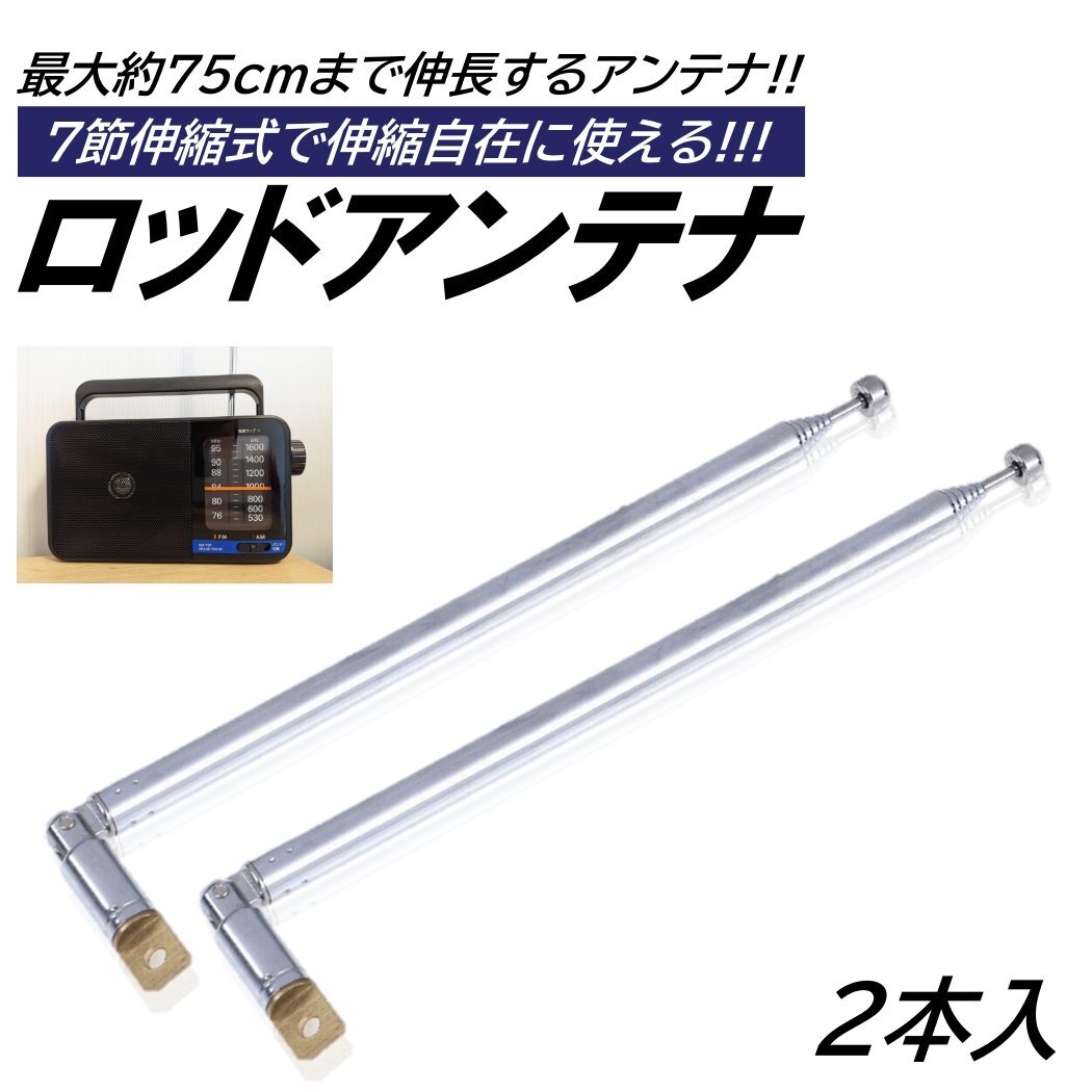 ロッドアンテナ 2本 伸縮式 FM ラジオ AM 最長 75cm 7セクション 交換用 可倒式 ステンレス