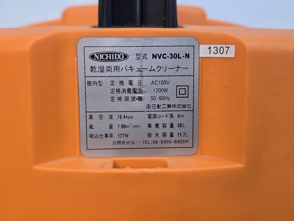 【中古品】 日動工業 乾湿両用バキュームクリーナー 業務用 掃除機 吸込仕事率177W NVC-30L-N 2013年製 ○YR-19172○ の出品です。