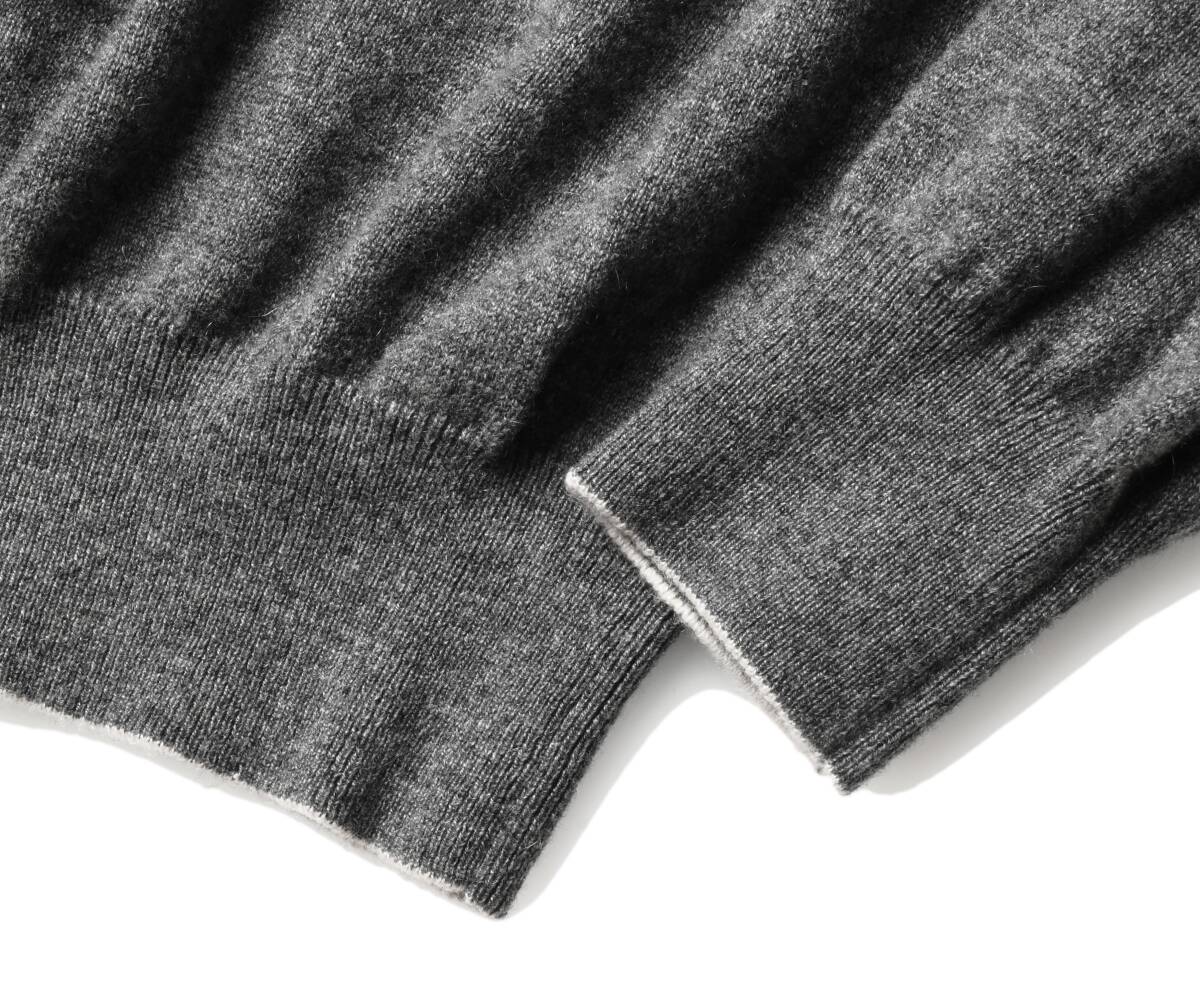 しっかりと目を詰めて編み立てた厚手のハイゲージ生地は、薄からずぶ厚からずな、ちょうどよい厚さなので トップスとして使ってもスマートにキマるし、インナー/ミッドレイヤーにしてももたつきません。保温性も抜群! カシミア素材のしなやかさと暖かさを失うことなく、高い耐久性を確保した作りになっています。 多少のことでは生地が磨り減ったりしませんし、毛玉が出来ても着ているうちに擦り切れ自然に落ちてなくなります。