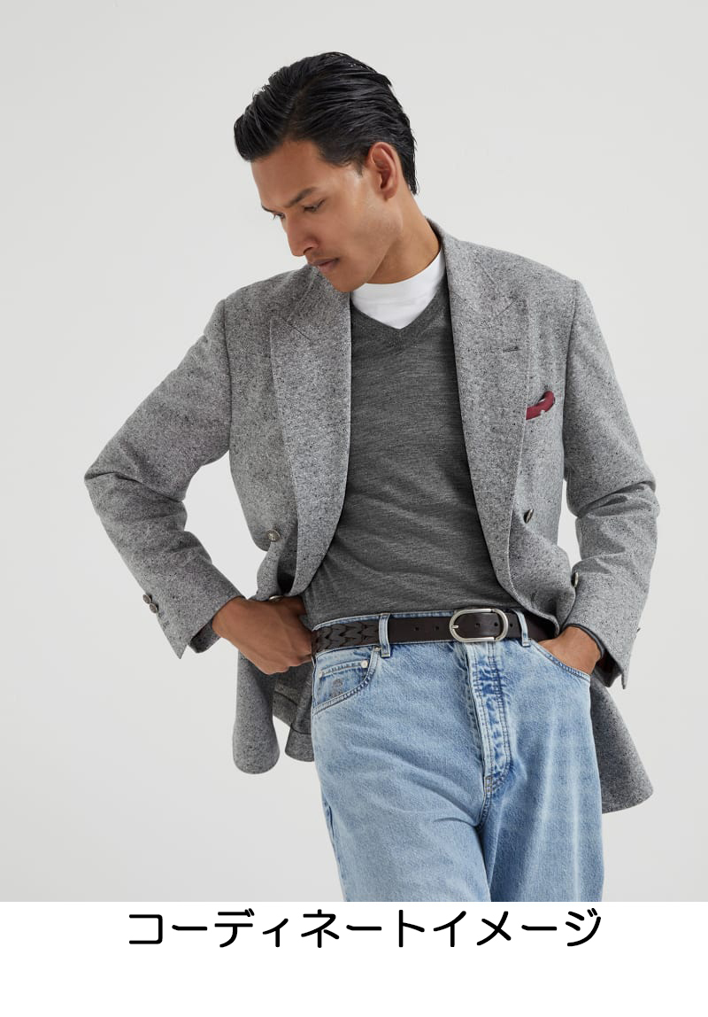 色合いの異なるグレーの糸を織り交ぜることで表現されたメランジェグレー。 奥行きのあるメランジェと極上素材の質感が相まって生まれる甘く柔らかなグレーは、若い男性には凛々しさ、 大人の男性には若々しさをもたらしてくれる幅広いポテンシャルを持っております。 また独自の霜降り感(メランジェ)は見た目にも涼しさを演出。