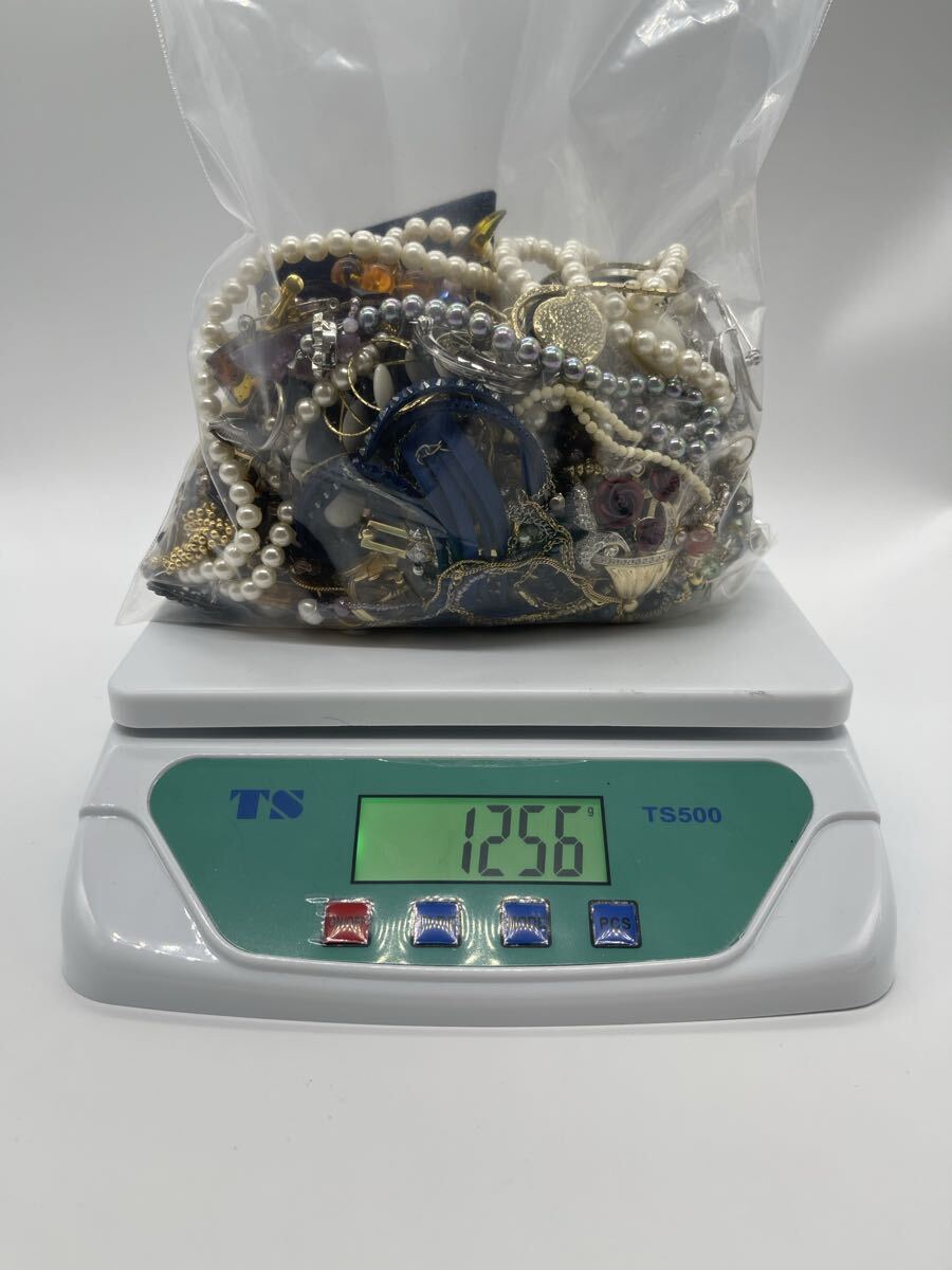 こちらは アクセサリー・ビーズ・ネックレス・ブローチ・イヤリングなど約1.2kg(1256g)まとめ売り です。
