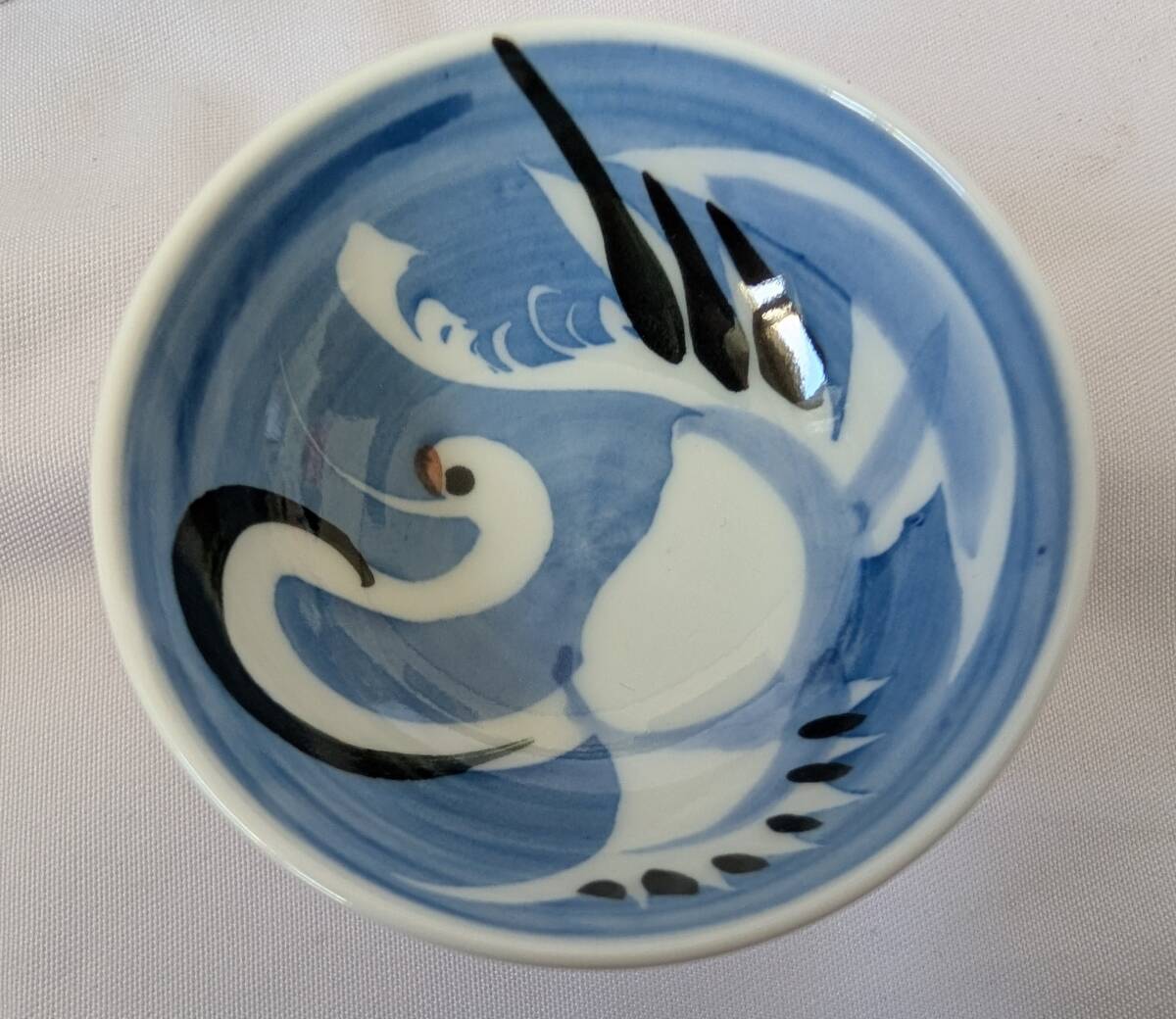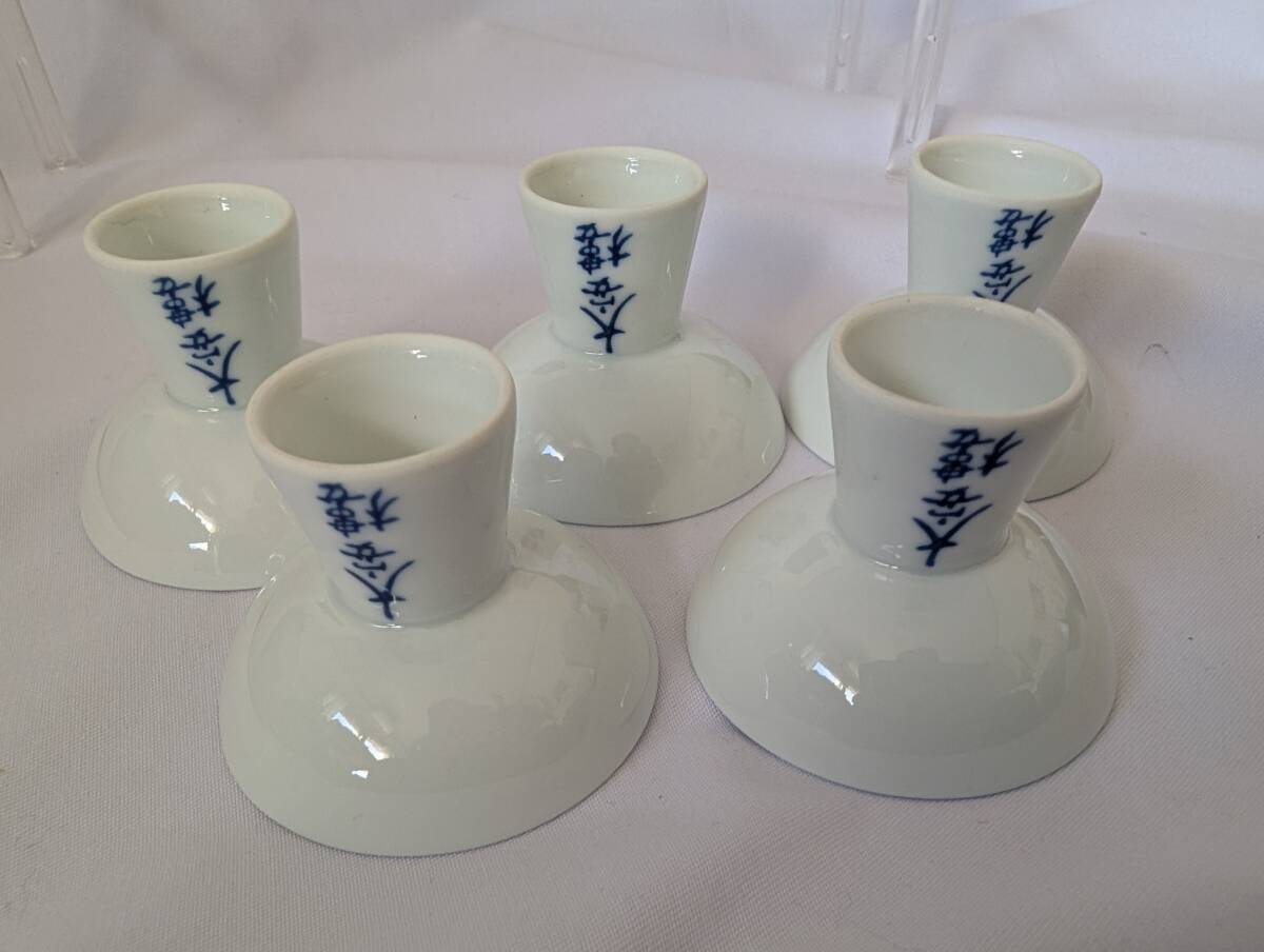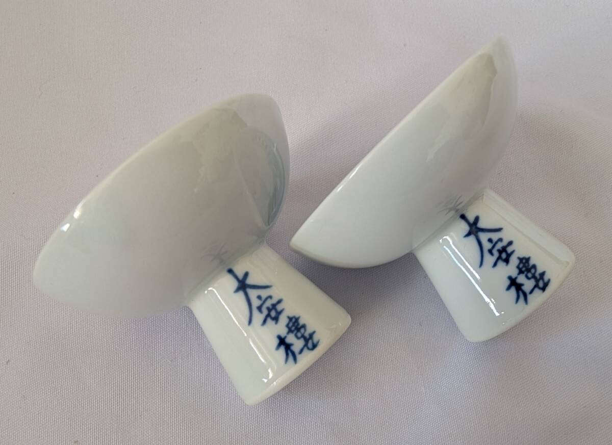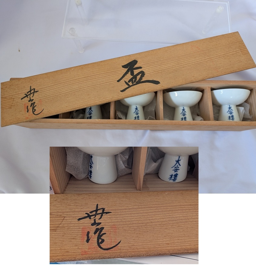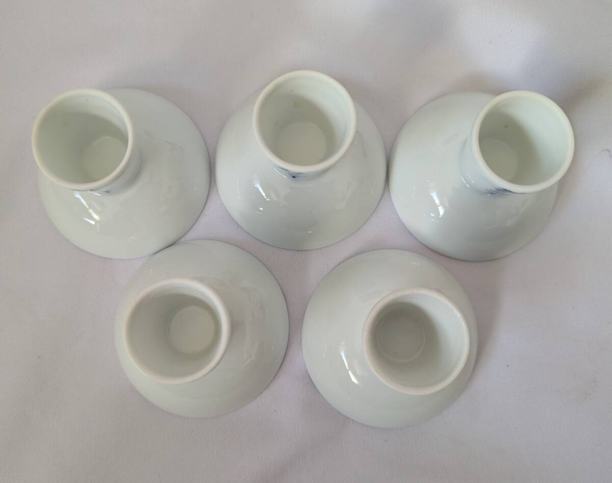 鶴図 高台 盃 お銚子 おちょこ お猪口  5客セット *染付 高台 足つき酒器 盃 杯 木箱入り 鶴絵図祝席に/祝い膳