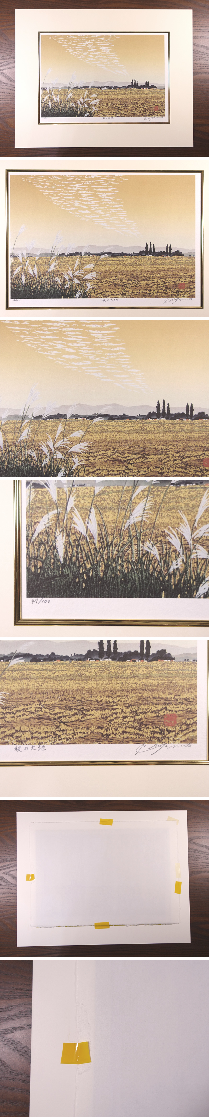 もちろん作者認可の下に制作されています。余白マージンには宮本秋風自身の肉筆でエディションNO.と作品名、サインが記されています。   またすぐにでも額装できるよう、新品のまま面金マットもお付け致します。お好きな額縁と合わせてお飾り頂きたく思います。