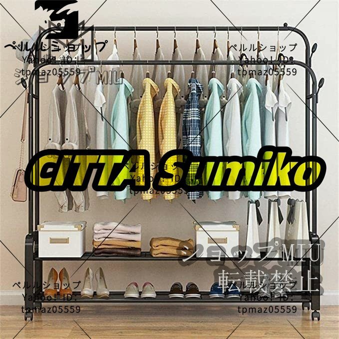 特売!品質保証★全長135CM ハンガーラック 2段 可動棚 高耐荷重 コートハンガー 収納棚 スチール棚 洋服掛け おしゃれ ホワイト