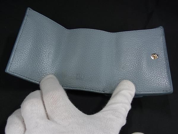 ■美品■ FURLA フルラ レザー 三つ折り財布 ウォレット 小銭入れ 札入れ カード入れ レディース ライトブルー系 DJ2440