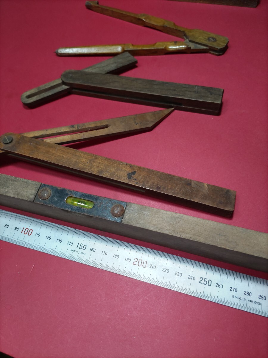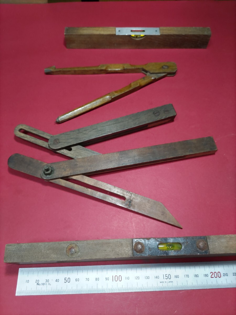 木製コンパス■木製水平器■垂直器■角度調整■木製工具5点セット■大工道具■DIY■古道具■昭和■レトロ■木の温もり■激レア■