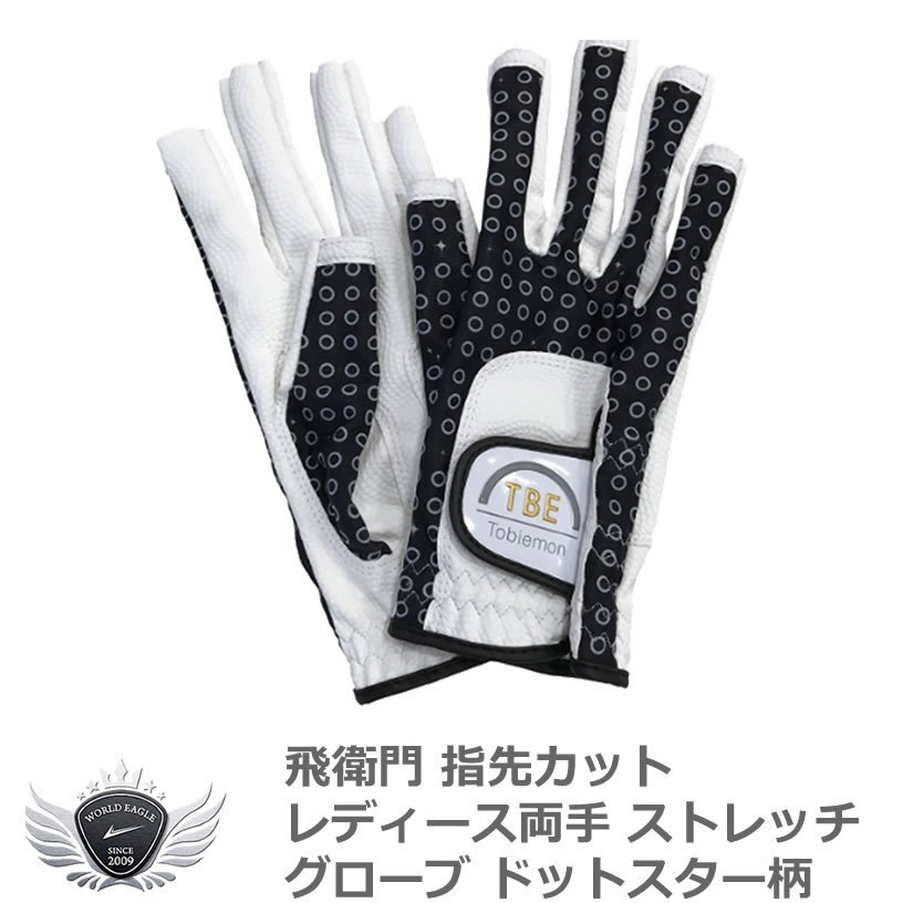 飛衛門 TOBIEMON 指先カット レディース両手ストレッチグローブ ドットスター柄