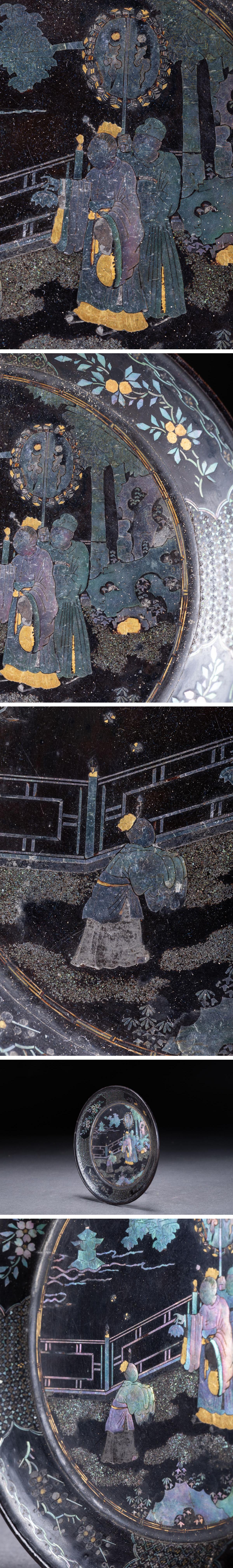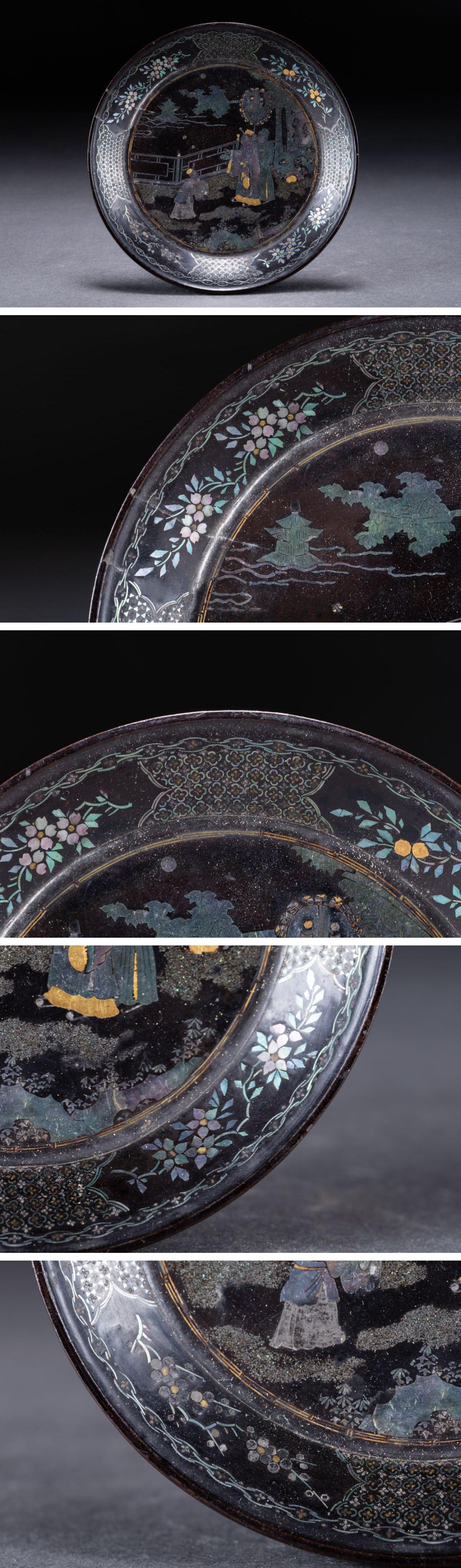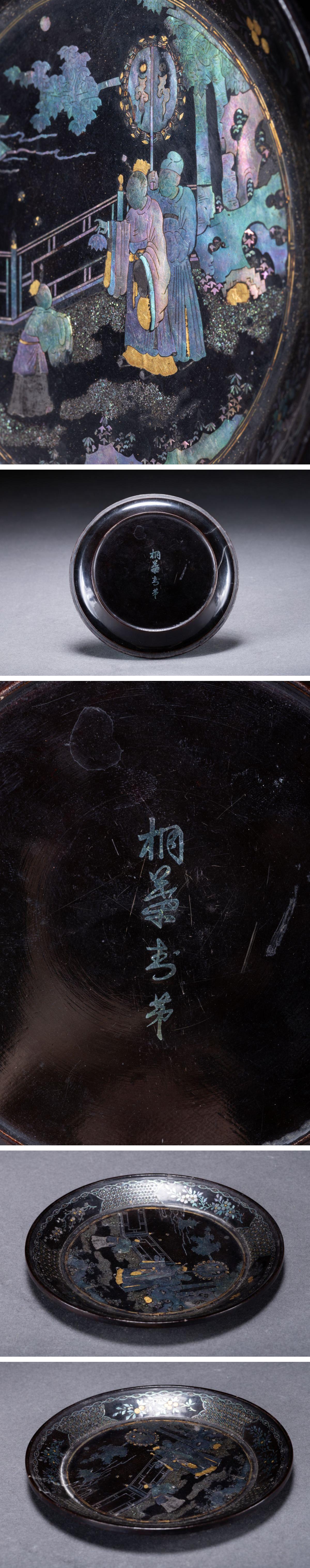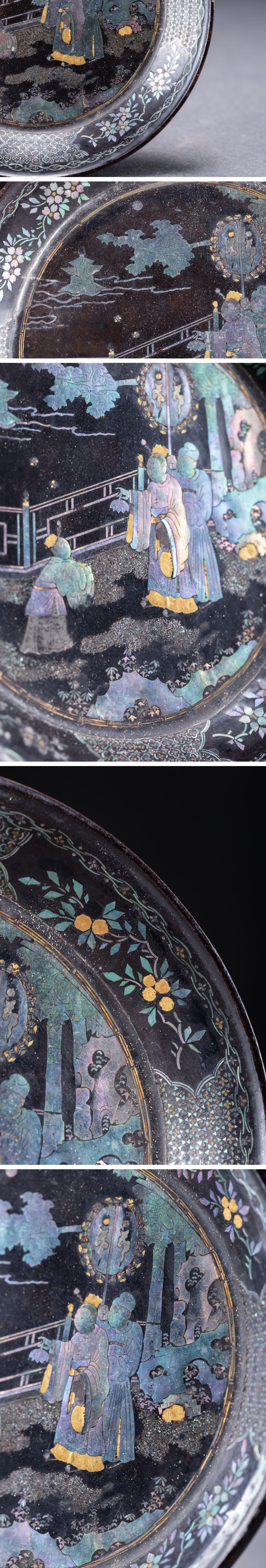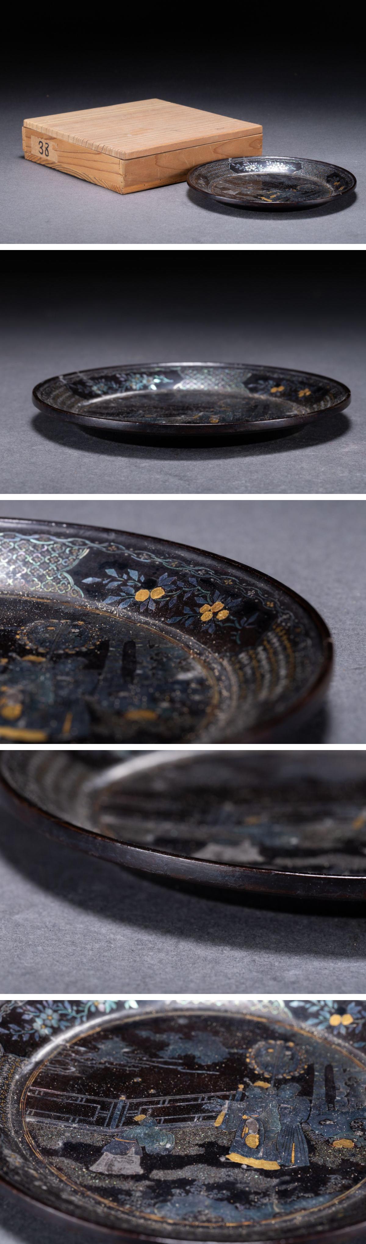 【華】時代舊藏 江戸時代 漆塗り 青貝象嵌人物紋飾皿 共箱 時代物 古美術 骨董品A25070054-EVQ
