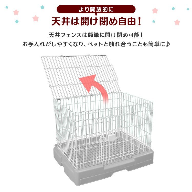 工具不要!組立簡単! 使いやすさ、掃除のしやすさを追求したペットケージです。 お留守番や、しつけに最適です! ドアロックは片手で簡単に開閉できるワンタッチ式です。 屋根は取り外し可能なのでお世話しやすく、わんちゃんの出し入れなども簡単にできます。 取り付けでケージからの飛出し・留守番時のペットの飛び出し等を防止できます! 引き出しトレータイプでお掃除らくらく! キャスター付きで移動がらくらく! わんちゃんだけではなく、ネコちゃん、うさぎなど小動物でも使えます♪ 【商品仕様】 カラー:ホワイト サイズ:(約)幅76cm×奥行53cm×高さ60cm(キャスター含む) 入口サイズ:(約)幅31cm×高さ37cm 対象:小型犬~中型犬、猫、うさぎ 他 重量:(約)7.8kg 素材:スチール、PVC、ポリプロピレン 【注意事項】 ・組み立て式(未完成品)です。 ・ペットの予期せぬ行動から発生したケガや事故・破損に対する保障は致しかねます。 ・表示されている耐荷重以上では絶対に使用しないでください。商品が破損したり、ケガをする恐れがあります。 ・生後間もない幼猫にご使用の場合、フェンスの隙間から頭や体が出る恐れがありますので注意してください。 ・写真と実物は多少異なる場合がございます。あらかじめご了承下さい。 ・商品は、モニターによって色合いが異なって見える場合があります。 ・仕様・デザインは改良のため予告なく変更することがあります。 |
