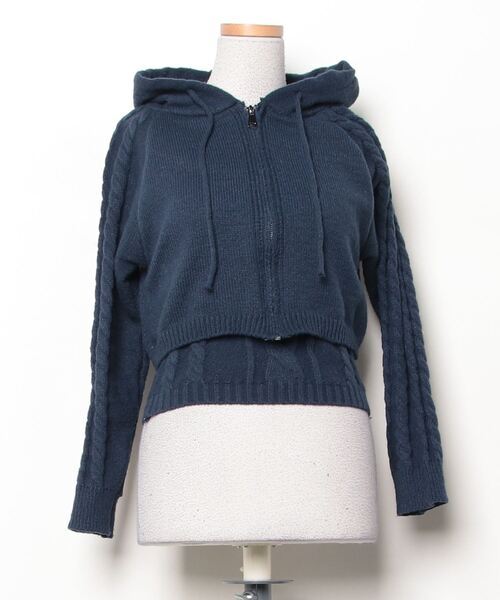参考商品名:2点セット フード付ショート丈ニットトップス+キャミソール