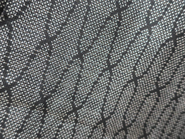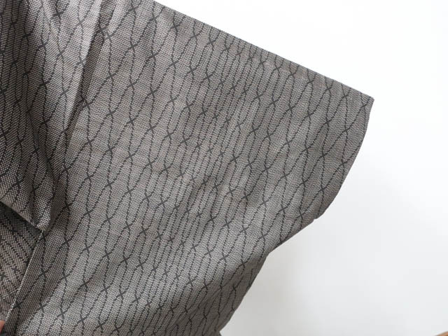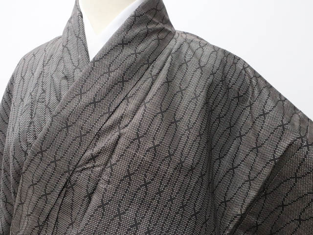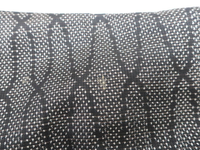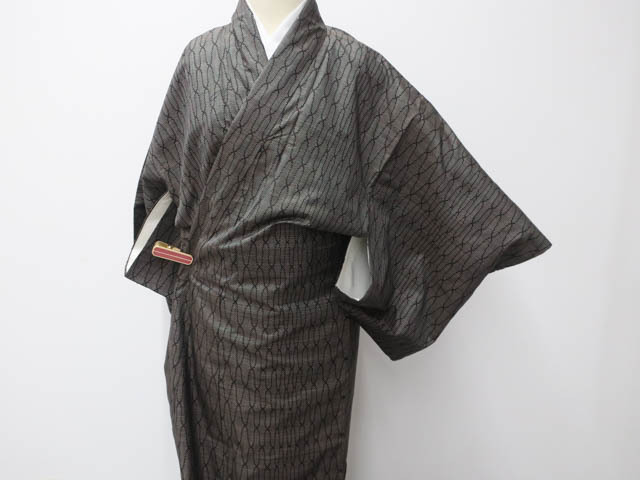 リサイクル商品のため、胴裏・後ろ身頃肩下付近にシミ、スナップボタン汚れがございますがご着用いただけると存じます。 地色は焦茶です。 1枚目の画像が近いお色かと思われます。 素材は正絹です。 |