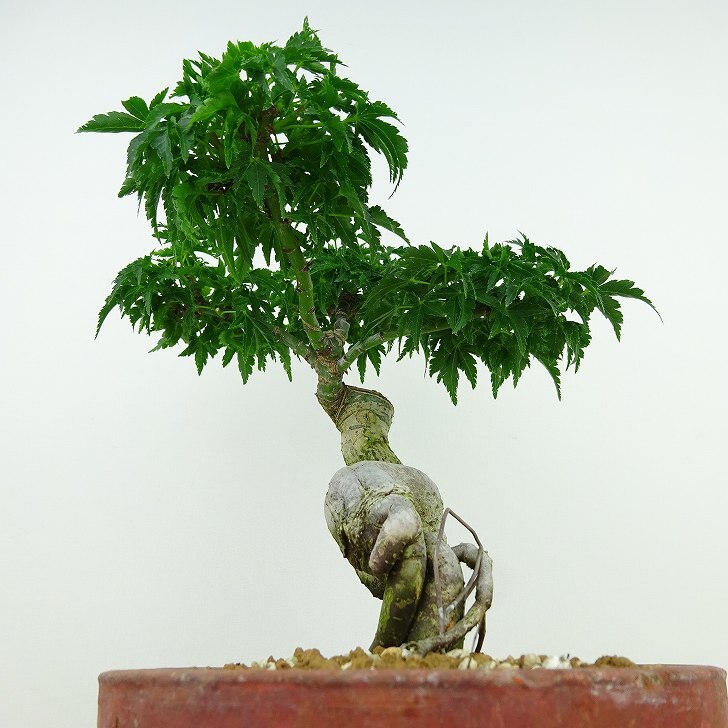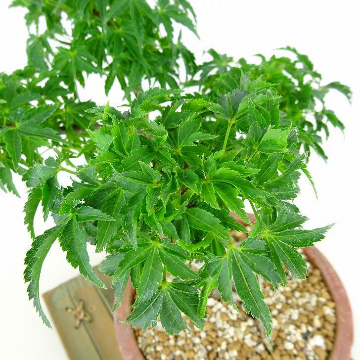 | ■植物ですので撮影時期や季節によって剪定などの手入れにより写真から変化がございます。撮影日をご確認のうえ、ご注文ください。 ■春頃~7月上旬。葉すかし、葉刈りをおこないます。目的として全体的な枝や葉の量を減らし風通しを良くし、幹にしっかりと日光を当てるため。 【獅子頭紅葉盆栽】 春先に芽吹き、夏頃には新緑、秋頃には紅葉、冬は寒樹姿と四季を通して楽しめる植物です。 もみじには、葉色、葉形、樹形、春先から真紅や紫紅色の芽を吹くもの、秋の紅葉で黄色に染まるものや斑入り葉、獅子葉、細葉、枝垂れ性など非常に多くの種類があります。 |
