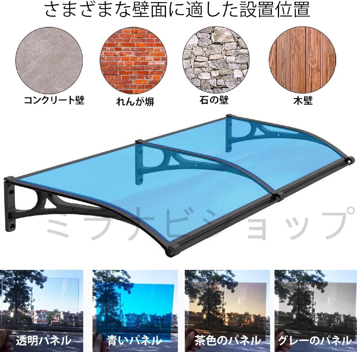 幅広い適用範囲: 簡易屋根 雨よけは半透明で、住宅および商業エントランスに最適です; ひさし 屋根 後付け 前後のドア、窓、ポーチ、パティオ、デッキ、バルコニー、カフェ、商業街などに設置でき、快適な雰囲気を提供します