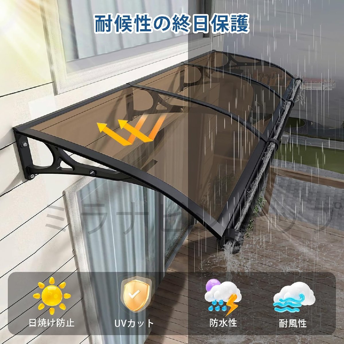 排水機能強化デザイン: この ひさし 屋根 後付け は滑らかな排水機能を備え、豪雨時の水溜りや溢れの問題を簡単に解決します; 屋根ひさし 雨よけ は漏水防止、軽量かつ頑丈で、漏水や日光を気にせず屋外を楽しめます