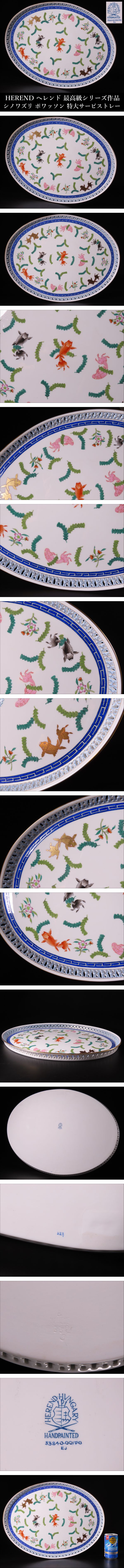 【ONE'S】HEREND ヘレンド 最高級シリーズ作品 シノワズリ ポワッソン マンダリン オープンワーク 透かし 特大サービストレー 西洋美術 | |||