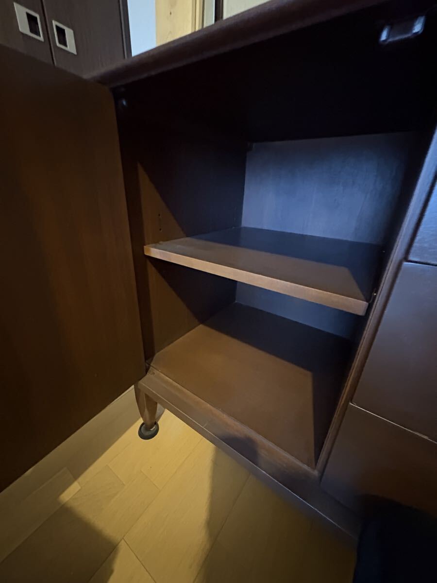 シンプルなデザインなので、他の家具の邪魔にもなりません。このキャビネットだけでめちゃくちゃおしゃれに見えます。