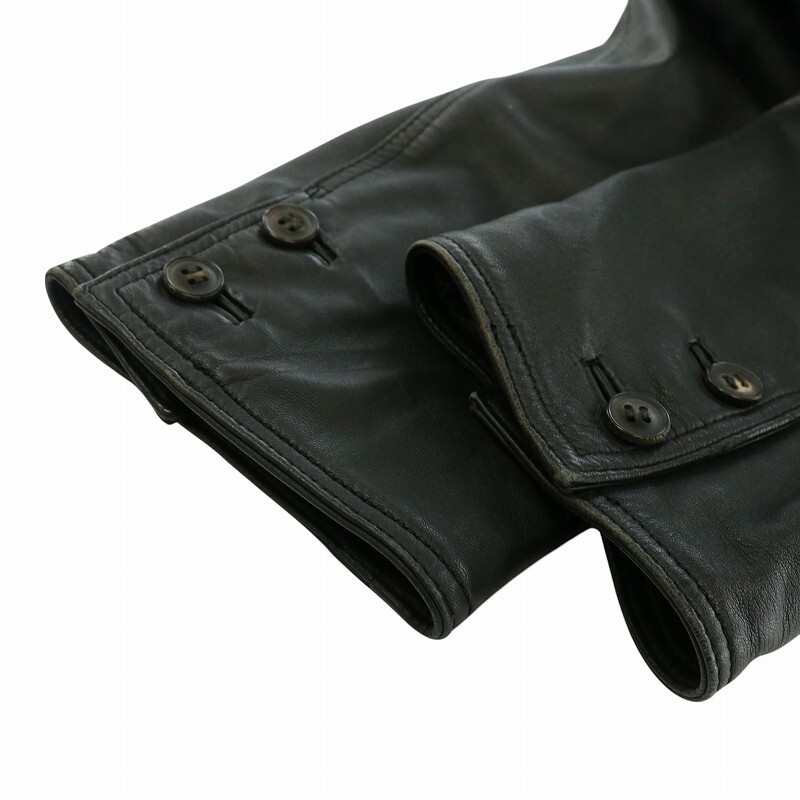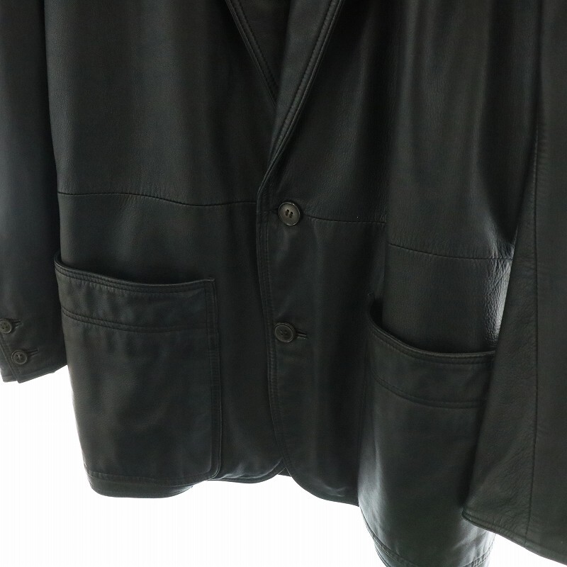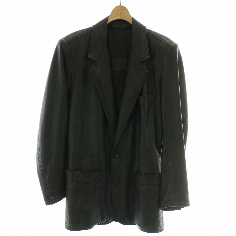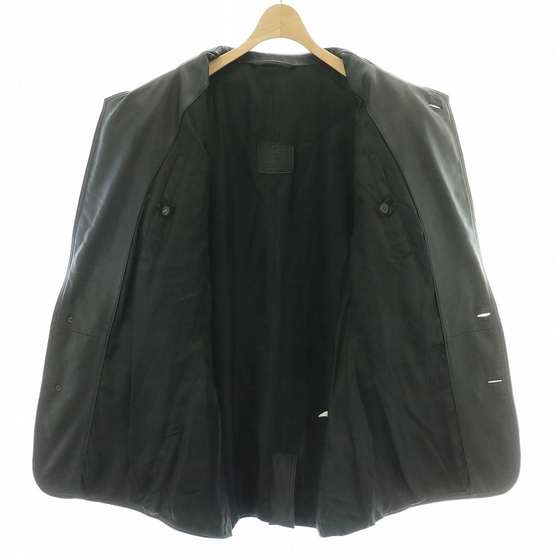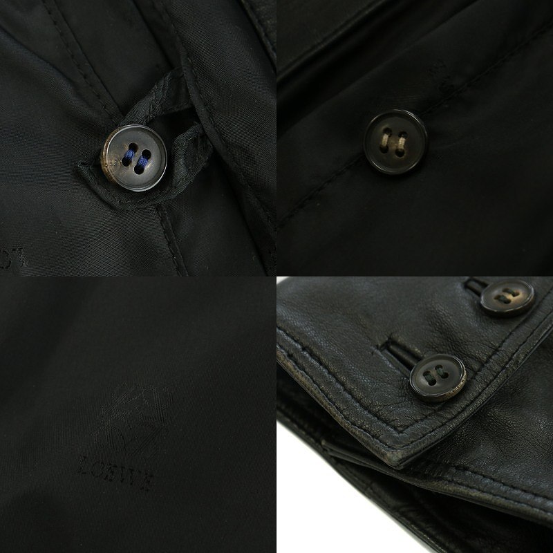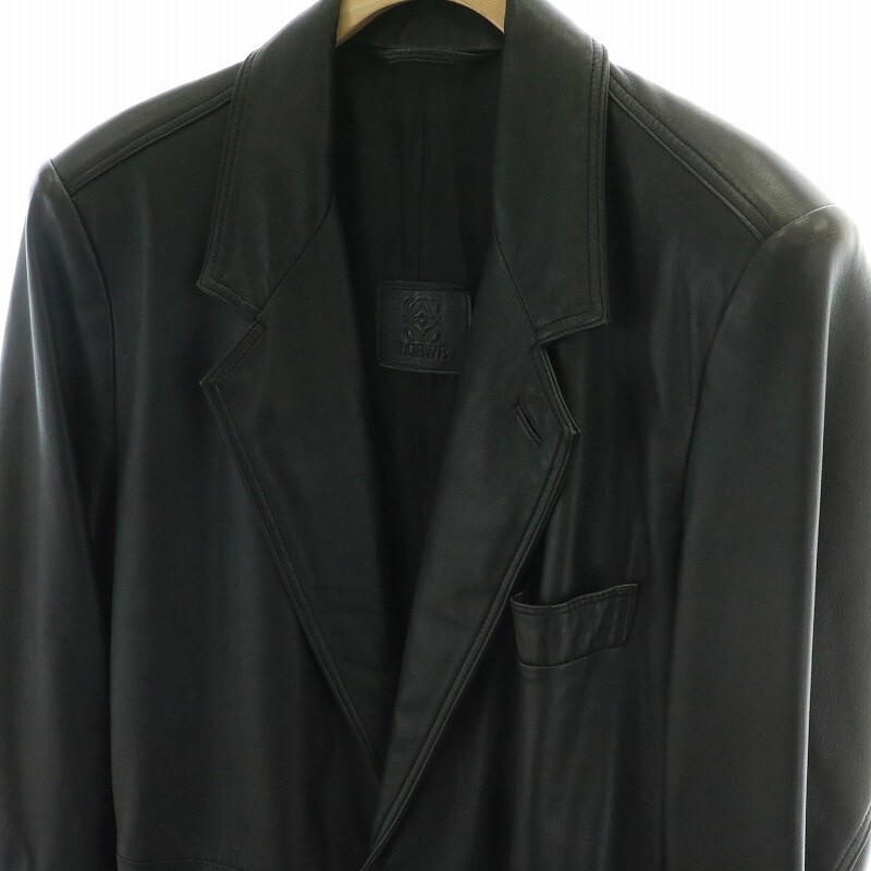 ロエベ LOEWE ヴィンテージ レザージャケット コート テーラード ショート シングル 2B ポケット 48 M 黒 ブラック /KW ■GY18 メンズ