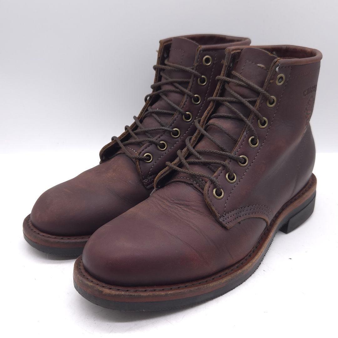 CHIPPEWA チペワ レザー ブーツ 刺繍黒タグ ブラウン 本革 アメカジ USA製 アメリカ製